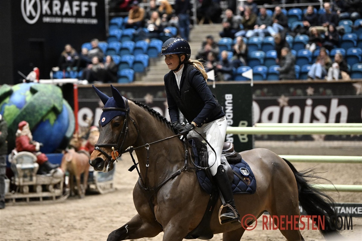 Smilla Kirial Hylleberg og Elsinore Colby e. Colman/ Feenspross XX førte klassen meget længe, men måtte se sig tilfredse med andenpladsen efter en fejlfri runde i tiden 38,93 sekunder. Tredje bedst blev Linnea Ilsøe Madsen på DV-hoppen Medina-EM e. Bøgegården's Graf's Stakkato/ Candillo (opdr. Peter A. Petersen), der sluttede fejlfrit i tiden 39,14 sekunder.