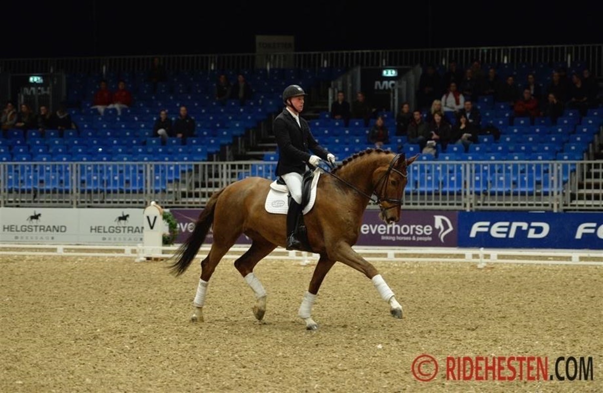 Michael Søgaard har lagt sig i spidsen på den store flotte fukshingst Jukebox e. Jazz/Rubinstein I (opdr. Jytte Kolster), som opnåede et gennemsnit på 9,0 = 539 point, fulgt af La Fallulah e. Tailormade Lancelot/Milan (opdr. Dorthe og Hans Jørgen Hoeck) klassens eneste skimmel, lidt forsigtigt men smukt redet af Dorthe S. Holck med 528 point og på tredjepladsen Treasure e. Come Back II/Fanal Prydsholm (opdr. Henning K. Christensen), som viste klassens flotteste skridt, redet af Ditte Gilkær.