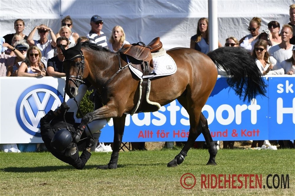 Der var ellers masser af dramatik på banen. Den derbyerfarne brite William Funnell var tæt på et styrt på banens første tredjedel med Billy Daimo, som absolut havde fået nok, og standsende efterfølgende. Geir Gulliksen kom alt for tæt på den hvide lodret efter banketten med VDL Groep Quatro, som fik bommen mellem halsen og forbenene, og var ved at snuble i landingen. Det sendte Geir ud over hestens hoved og ned til højre, hans venstre fod blev dog hængende i stigbøjlen og der opstod nogle dramatiske sekunder inden foden løsnede sig, og Geir ramte jorden.