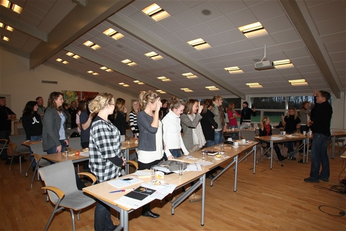 Det flotte kursuscenter, ECCO Center i Tønder, dannede i denne weekend rammen om en træningssamling for knap 40 af landets mest talentfulde unge dressurryttere. Foruden et særdeles interessant, fagligt program var der tid til at pigerne (og en enkelt dreng) kunne hygge sig sammen i pauserne og under de lækre måltider. Programmet tog i år bl.a. sigte på, at give de unge ryttere nogle værktøjer til mentaltræning. Coach Rasmus Bagger fortale levende og medrivende i fire timer om vigtigheden af mentalt overskud, både i den daglige træning og når det hele bliver alvor på konkurrencebanerne. Deltagerne blev med jævne mellemrum under den teoretiske gennemgang udfordret til at slukke fakler i munden, hoppe ned på knust glas, knække et bræt med at raskt karateslag med mere. Andreas Helgstrand fulgte op. Han fortalte de opmærksomme tilhørere, hvordan han forbereder sig mentalt, samt hvilket management der skal til, for at holde topkonkurrenceheste glade og sunde. Det sidste blev også behandlet søndag eftermiddag af dyrlæge HC Matthiesen. Her var en stor del af rytternes forældre også samlet, så de kunne få glæde af hans gode råd og informationer om bl.a. doping, transportstress og vigtigheden af at opdage en skade på så tidligt et tidspunkt, at den lettere lader sig behandle. Programmet bød også på en gennemgang af flere ridt fra Junior- og Ungrytter EM sidste sommer, og her var spørgelysten stor, og debatten bølgede mellem landstrænerne Vibeke Degn Andersen, Jon D. Pedersen samt holdleder Rigmor Christensen og H.C. Matthiesen. Mange ryttere gav udtryk for, at det havde været en super god træningssamling, og jublen var stor søndag eftermiddag, da Hanni Toosbuy Kasprzak på vegne af Toosbuy Fonden inviterede til samling igen til næste år. Læs meget mere om de faglige indlæg i Ridehestens martsnummer og følg med her på siden de kommernde dage, hvor man vil kunne se web-klip fra træningssamlingen.
