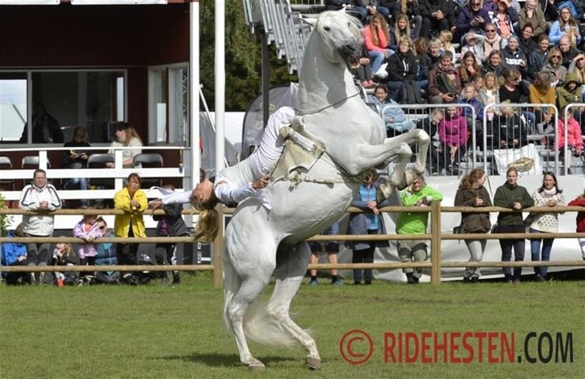 Showene blev begge dage afsluttet af franske Audrey Hasta Luego, som med sin lusitanohingst red et fint program uden hovedtøj og viste samspil og harmoni i de sværere øvelser som piaffe og passage samt den i afslutningen stod på bagbenene, mens hun lå ned ad hesten.