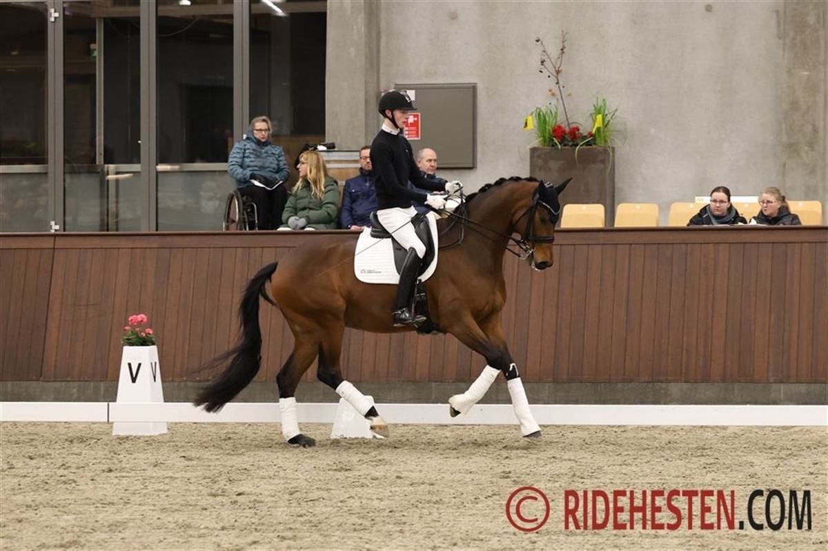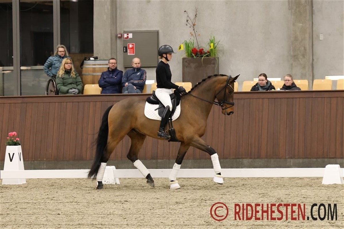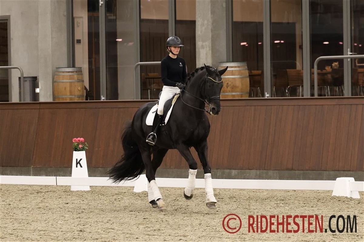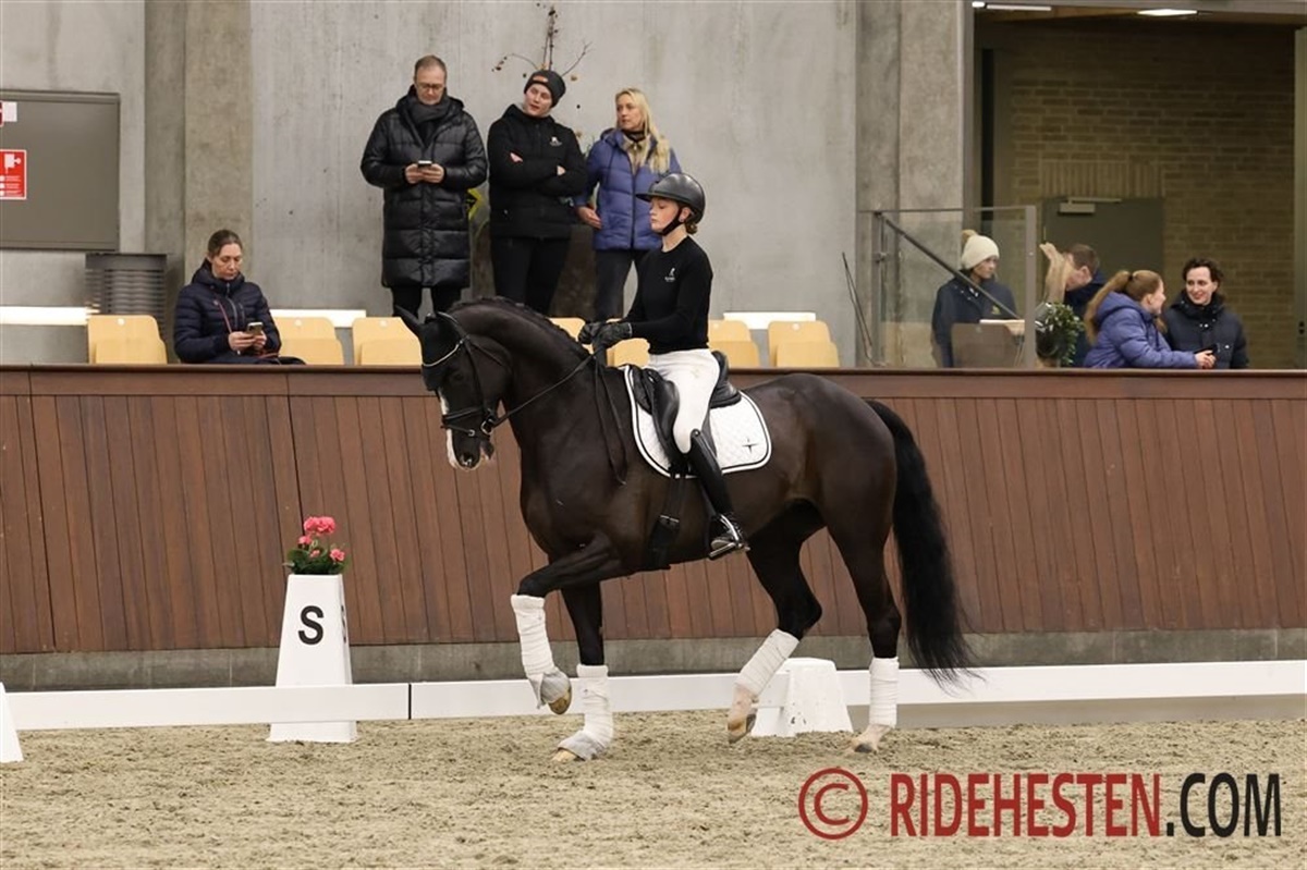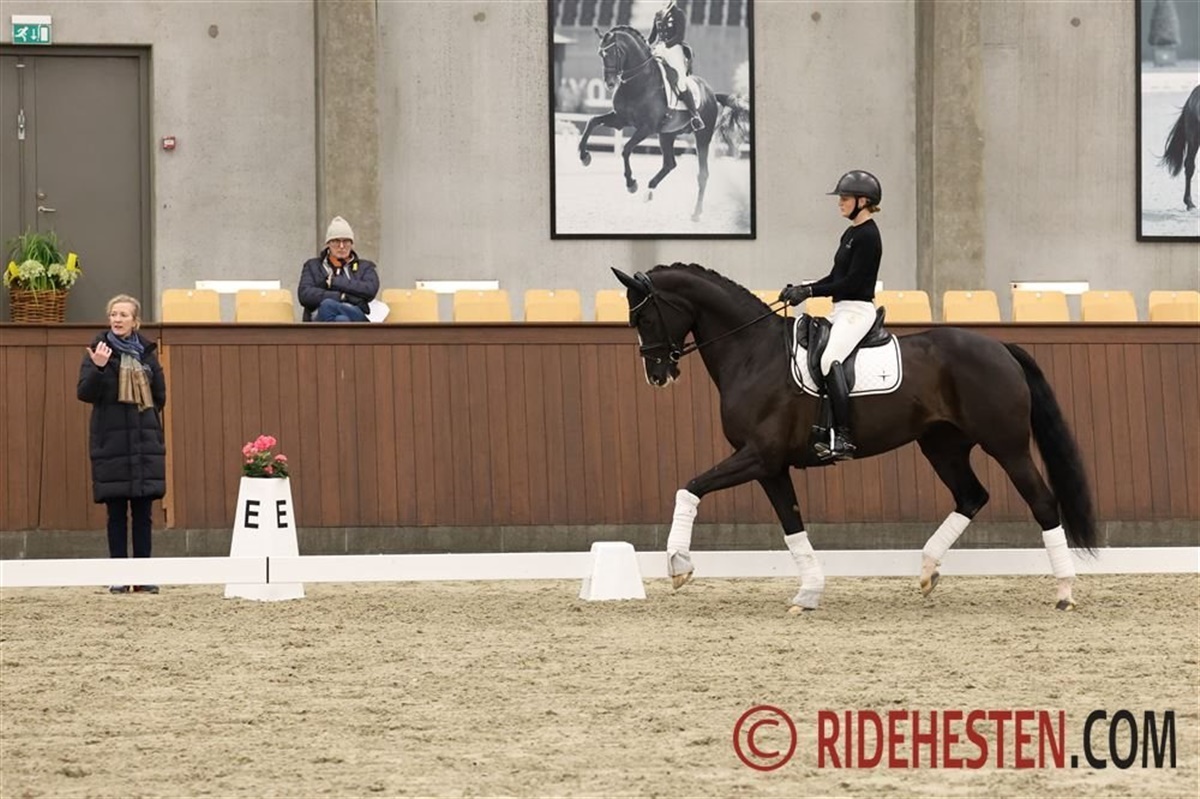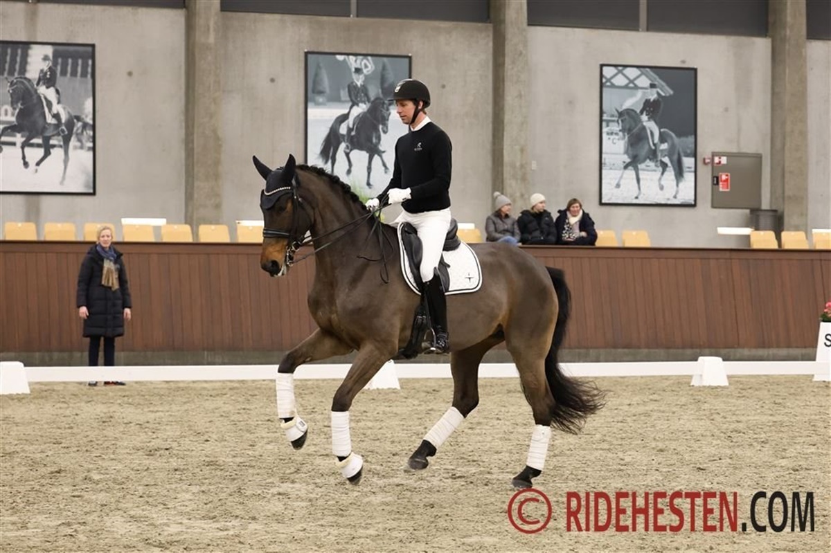 Aftenen blev rundet af med 13-årige Foldagers Chablis e. Blue Hors Romanov/ Idocus (opdr. Mette Frederiksen), der er Sophias U25-hest, men i går var Dennis i sadlen, og de to havde byttet hest i og med, at Sophia kom ind på den 21-årige hannoveranerhingst Delatio e. De Niro/ Rubinstein I, som hun har fået lov at øve sig på og netop har været til start med ved landsstævnet i Esbjerg.
