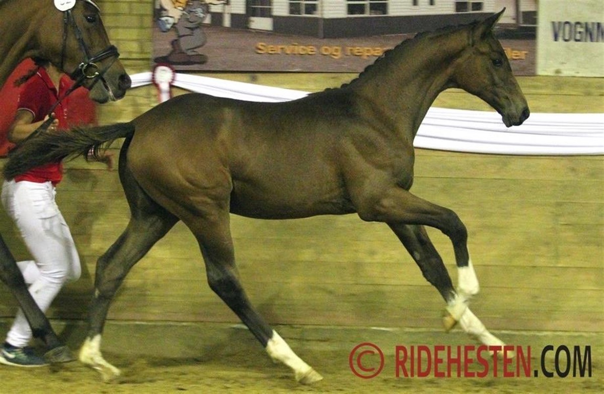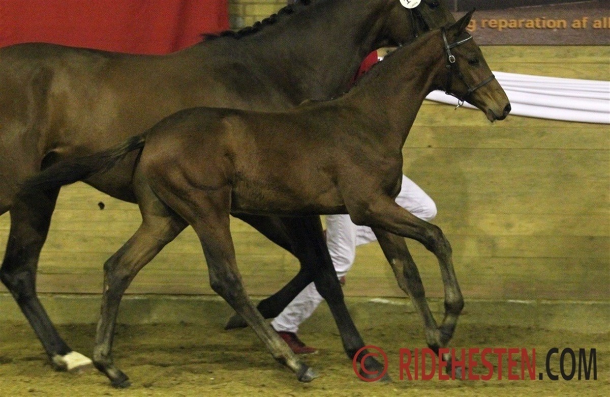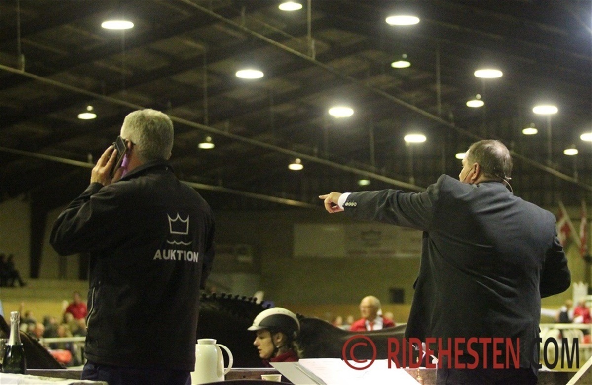 Klaus Munkedal trak det længste strå i en spændende budduel om hingsteføllet Østerhyldigs Barolo e. Hesselhøj Donkey Boy/ Stevie Wonder/ Schwadroneur (opdr. Helle og Christian Feldborg Thøgersen), der fik hammerslag på 75.000 kr. og et stort bifald i den feststemte hal i Ikast Rideklub, hvor den erfarne auktionarius Finn Kampen svang hammeren.