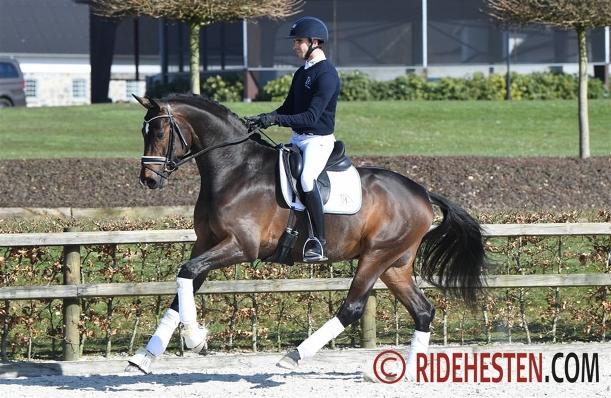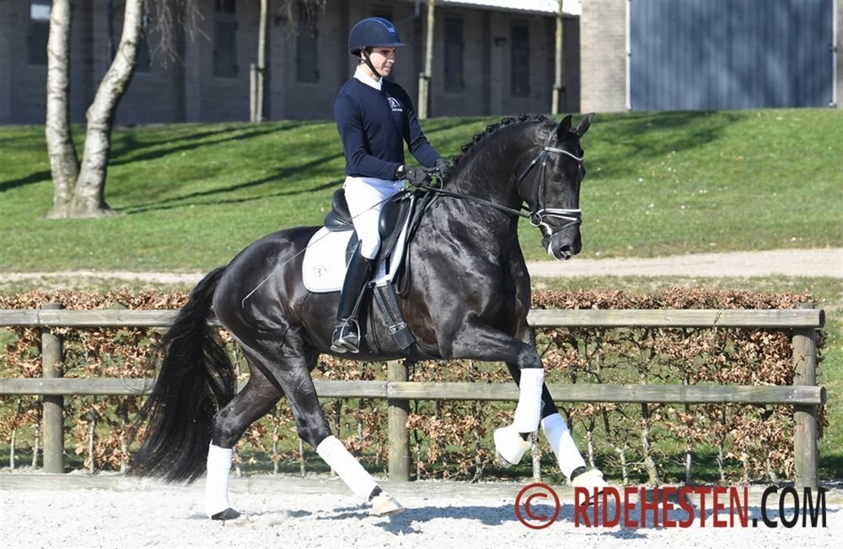 Blue Hors’ spanske rytter Cristian Tudela Ruiz stod for præsentationen af hingstene Blue Hors Dalian, Blue Hors Zackorado og Blue Hors Fortron, mens Nanna Skodborg Merrald viste Blue Hors Farrell og Blue Hors Kingston, og Daniel Bachmann Andersen præsenterede dagens sidste hingste Blue Hors Zackerey.