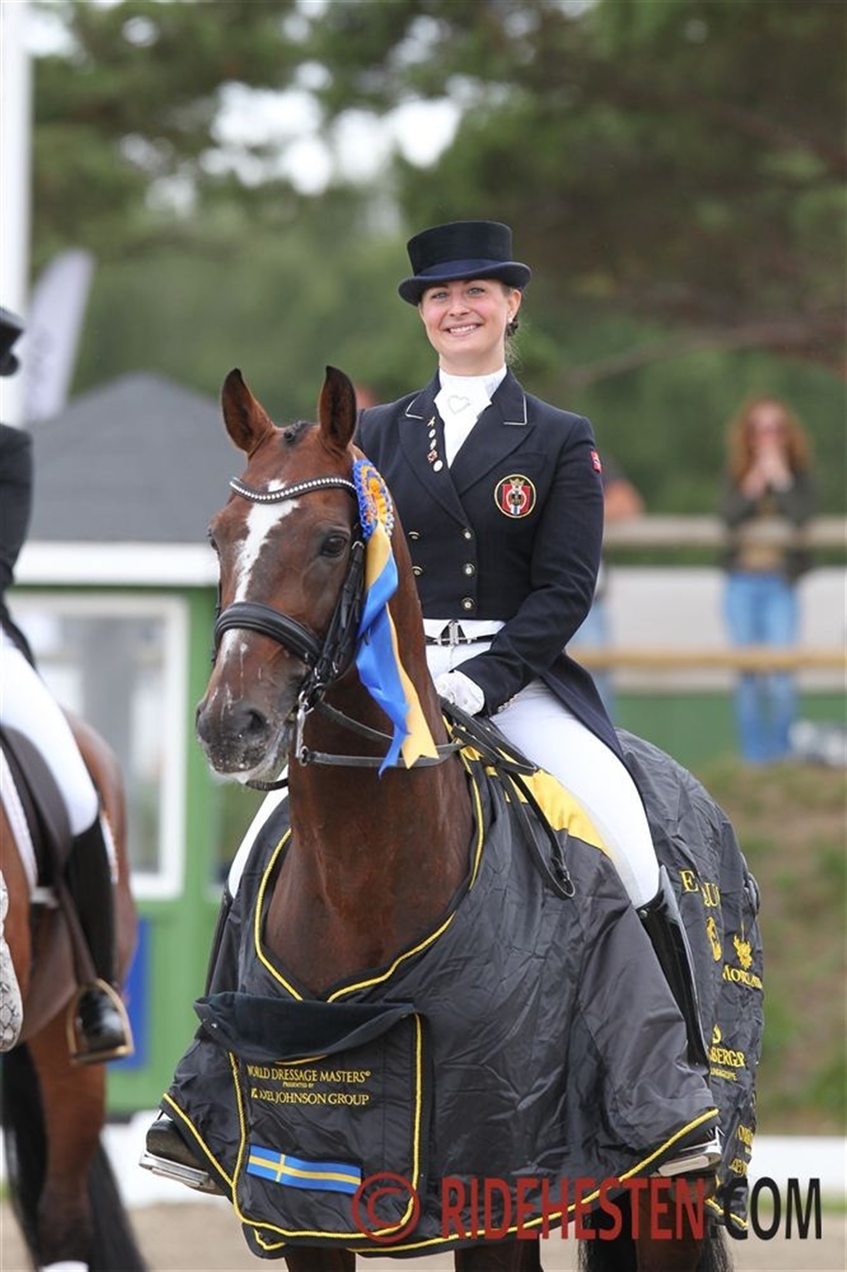 Det internationale dressurstævne i Falsterbo blev en ubetindet succes for de to norske ryttere, der træner hos Hasse Hoffmann på Søholt. Under stævnet i Falsterbo blev der afviklet en afdeling af den internationale dressurserie "World Dressage Masters" - bestående af en indledende 5-stjernet Grand Prix, hvorefter rytterne vælger enten at ride Grand Prix Kür eller Grand Prix Special. Cathrine Rasmussen og Fernandez e. Florestan, som Cathrine blot har redet i knapt et år red sig ind på fjerdepladsen i Grand Prix-klassen med 70,17% - Cathrines landsmand Lillann Jebsen havde lidt problemer med Pro-Set i Grand Prix-klassen, han blev lidt spændt over den fortættede atmosfære på dressurstation og parret scorede 66,957%, hvilket rakte til en 9. plads. De to norske ryttere valgte derefter at ride videre i hver deres afdeling af de to fem-stjernede konkurrencer, og det skulle vise sig at være et godt valg. Lillann Jebsen fik igen fuld kontrol over Pro-Set i Specialen, og de leverede deres hidtil bedste resultat med 69,467% hvilket rakte til sejren i klassen. Der er flere penge at ride om i Grand Prix kür-klassen i World Dressage Masters, og den klasse tiltrak også topnavnene Patrik Kittel og Isabell Werth. det blev da også mellem de to klassen blev afgjort, til Kittels fordel. Cathrine Rasmussen og Fernandez har en meget smuk og harmonisk kür og de scorede da også 76% for det kunstneriske indtryk hos en af dommerne. Ved det efterfølgende interview kunne Cathrine da også bekræfte, at hun var super tilfreds med sit ridt, blot ikke med fejlene, tilføjede hun. Desværre havde hun fejl i begge etterchangementsserier, en øvelse som Fernandez ellers udfører med stor sikkerhed. De opnåede 71,7% mod Tinne Vilhelmson-Silfvens 73% - Jeg er vældig stolt og tilfreds med mine elever, bekræftede Hasse Hoffmann efter stævnet. - De er begge super ambitiøse og seriøse med deres ridning og træning, og deres resultater i Falsterbo er deres bedste hidtil, men der er flere points at hente endnu, understregede han. Hasse Hoffmann var også selv til start ved stævnet i den internationale 3-stjernde Grand Prix og Grand Prix kür med Tiesto, og han blev placeret på henholdsvis 5. og 4. pladsen. - Jeg er tilfreds med resultatet, også set i lyset af, at Tiesto endnu lader sig påvirke af atmosfæren, men der er ikke anden vej, end at mase på, og få givet den noget rutine, fortæller Hasse Hoffmann, der red sin spændende kür for det svenske publikum. - I Falsterbo fik jeg mit ridt til at passe bedre til musikken, end det lykkedes ved DM på Broholm. Dommerne har givet udtryk for, at de syntes det er en spændende koografi, og det kan jeg bl.a. takke Lis Christensson for. Når man skal sammensætte en kür, så gælder det jo om at få præsenteret hestens styrker bedst muligt, forklarer Hasse. En af de nyskabelser han har bragt ind i küren er en fri skridt på diagonalen, afbrudt af en piaffe, hvorefter han igen går ud i fri skridt.
