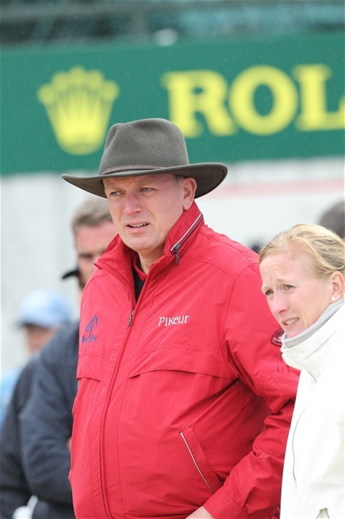 Sune Hansen holdt hovedet koldt og fik redet et rigtigt flot Grand Prix program på Gredstedgaards Casmir. Han fik ellers ikke den bedste start, med en dårlig indridningsparade og taktfejl i begge øgningerne, men parret kom stærkt tilbage i piaffe og passage øvelserne, der blev vist i god og regelmæssigt takt og med godt løft. I serierne svingede Casmir lidt, som han har for vane, men changementerne var flotte og gennemsprungne og uden fejl. Sune Hansen og Gredstedgaards Casmir fik 69,106% og Danmark ligger nu på 6. plads i holdkonkurrencen der føres af Holland med 145,709 points foran Tyskland med 140,340 points og England med 138,341 points. I morgen tirsdag kommer de to sidste holdryttere fra hver nation i konkurrence, og traditionen tro er det nationernes normalt højest scorende ryttere, så meget kan endnu ske.