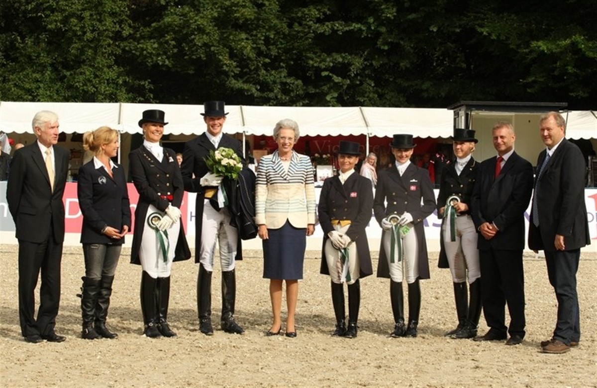 Landsholdsrytterne red virkeligt optimalt i First Horse International FEI Grand Prix Kür i Parken idag, hvor Sune Hansen med 74,40% red sejren i hus på den udtryksfulde avlshingst Blue Hors Romanov. Det var en utrolig spændende kürklasse ved CDI-stævnet i Bernstorffsparken idag, hvor de to danske landsholdsryttere, Anne Troensegaard og Anne van Olst, i lang tid toppede resultatlisten kun adskilt af 0,05%. Andenpladsen gik således til Anne van Olst tæt efterfulgt af det helt nye landsholdmedlem, Anne Troensegaard, som bare bliver bedre og bedre. Prinsesse Nathalie havde valgt at ride Grand Prix Special igår og deltog således ikke i søndagens Grand Prix Kür, men det gjorde reserverytter Sanne Henningsen til gengæld med Atterupgaards Molberg. Hesten var lidt skræmt på stadion idag, men her viste Sanne sin erfaring og sit overblik og red sig med over 69% ind på en femteplads lige efter Mikala Gundersen og hingsten Leonberg. Mikala fik en meget flot afslutning på en Europaturné, idet Leonberg virkede tilpas og afslappet på stadion idag, hvilket resulterede i over 70% og en fjerdeplads.