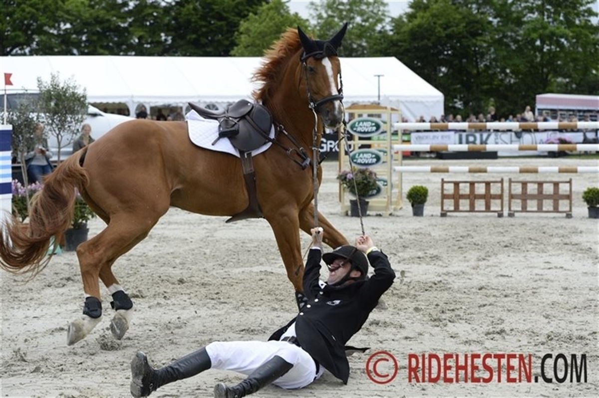 Seniorrytternes mesterskab begynder kl. 14. I fredagens første afdeling var der 33 ryttere til start, nu er feltet reduceret til 20 startende. I lighed med sidste år var det Søren Nørgaard Pedersen som kunne gå lørdagens hviledag i møde som vinder af første afdeling med Tailordade Chaloubet, han gentog dermed sidste års succes, men det er nok også det eneste fra sidste års mesterskab Søren ønsker at gentage. I DM-finalen sidste år havde Søren mesterskabet i sin hule hånd, men på forhindring nr. to - en stor mur - bremsede Tailormade Chaloubet pludseligt og snurrede rundt, med det resultat, at Søren faldt af og hans håb om at gentage DM-sejren fra 2012 endte i sandet. Søren har fire fejl med sig i lighed med: Søren Møller Nielsen, Torben Frandsen, Tina Lund og Rikke Haastrup Kristensen. Peter Lykke Svendsen har fem fejl. Der er ingen tvivl om, at rytterne vil blive udfordret i dag på Bo Bak Andersens DM-baner. - Det kan ikke blive meget større end det var i første afdeling, men oxerne bliver bredere, lover banebyggeren.