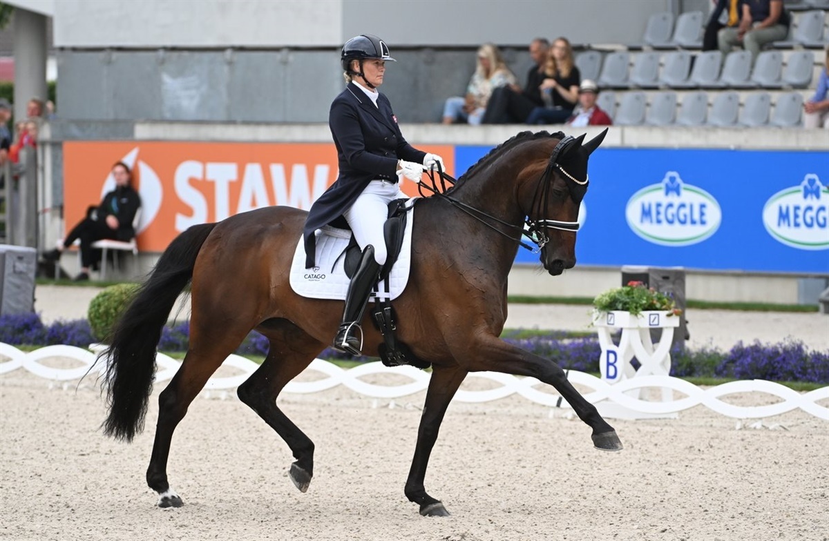 Den danskejede hingst Total Hope e. Totilas/Blue Hors Don Schufro opnåede 72,891% og blev nr. 3 i klassen med norske Isabel Freese, mens danske Lone Bang Zindorff og den 14-årige hoppe Thranegaardens Rostov e. Blue Hors Romanov/ Diamond opnåede 70,609% og blev nr. 6.