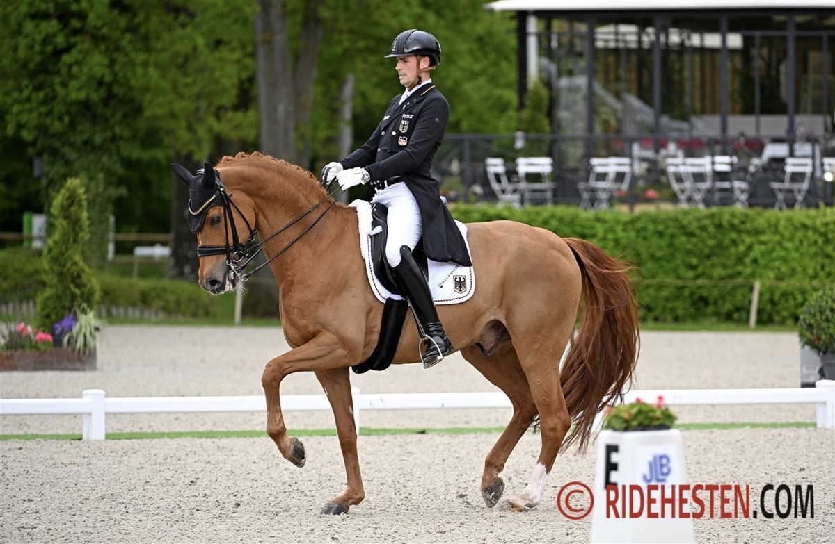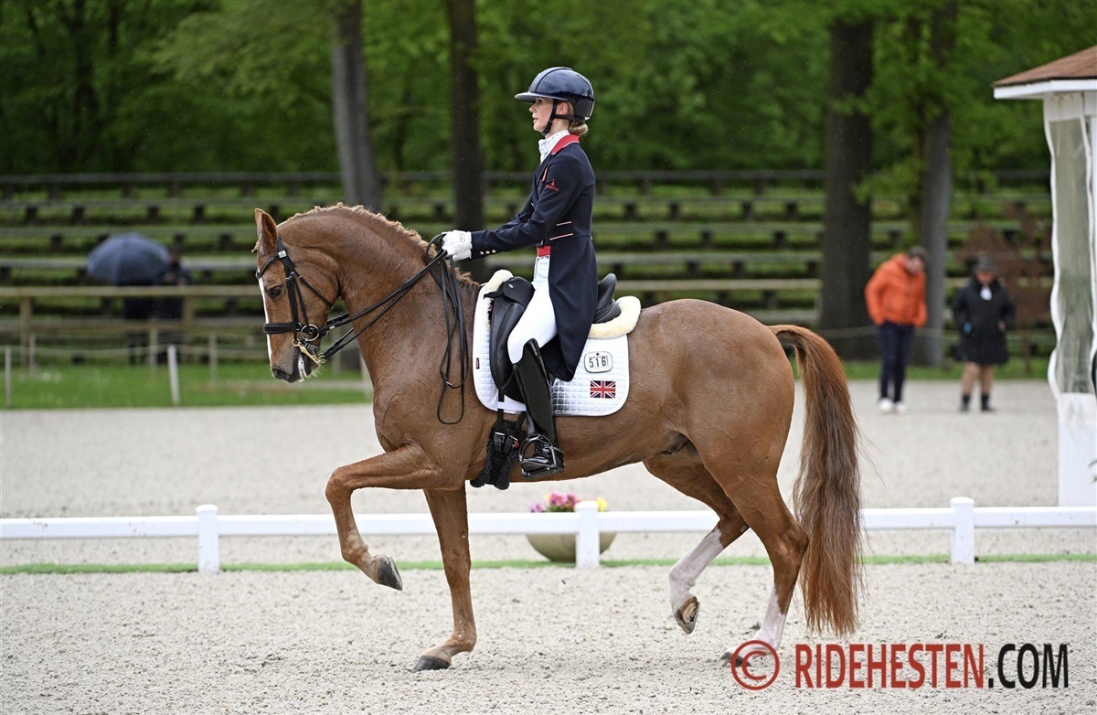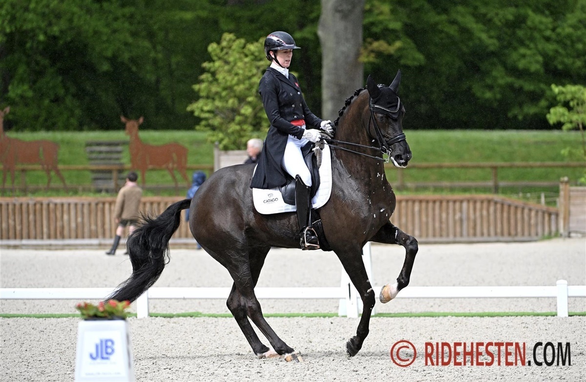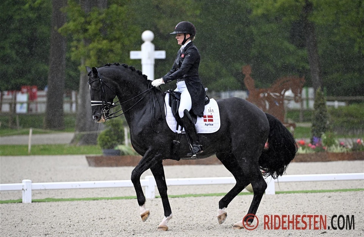 Nanna Skodborg Merrald har valgt at spare Blue Hors Zepter for turen til Frankrig og i stedet har hun støvet Blue Hors St. Schufro af. Den sorte hingst har sin styrke i galopprogrammet og det var også her ekvipagen hev de store karakterer ind i dagens program, hvor de var så uheldige at himlen åbnede sig lige inden deres start og gjorde at det blev en meget våd fornøjelse. De kom heldigvis godt igennem både programmet og regnbygen, hvilket resulterede i 74,43% og dermed en god hjælp til sejren i Nations Cup.