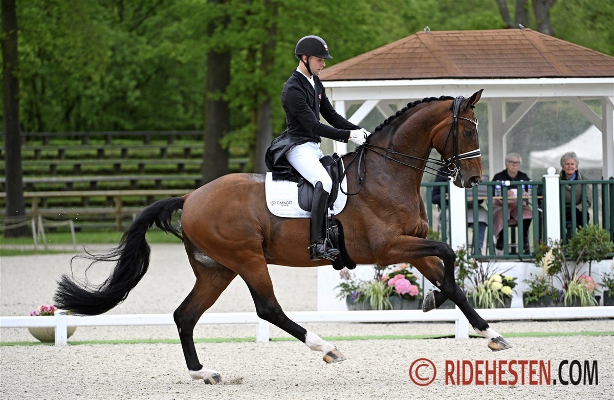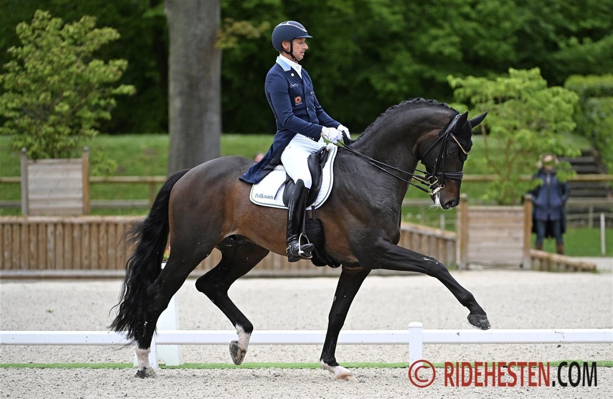 Daniel og Vayron startede ud som første danske ekvipage og de endte faktisk også som bedste danske ekvipage. Den store Westphaler-hingst udvikler sig hele tiden i den rigtige retning og det er tydeligt hvor meget styrke han har fået hen over vinteren. De store, til tider lidt langsomme bevægelser, er blevet lidt mere kvikke og det gavner i samtlige øvelser. Faktisk satte Vayron ikke en hov forkert under dagens tur, hvor dommerne belønnede både fri trav og fri galop med både ni og ti-taller. Det resulterede i en samlet procent på 76,15%, hvilket lagde dem i spidsen af klassen langt hen ad vejen.