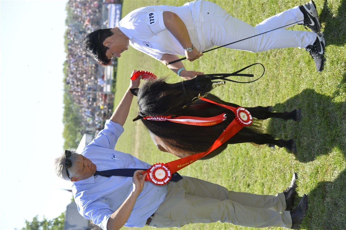 Welshponyen Silvia Maegaard e. Møllegårds Spartacus/Sally Maegaard vandt publikums hjerter og gik med sejren i sms-konkurrencen. Skimmelhoppen er ejet af Poul Jeppesen fra Frederikssund.
