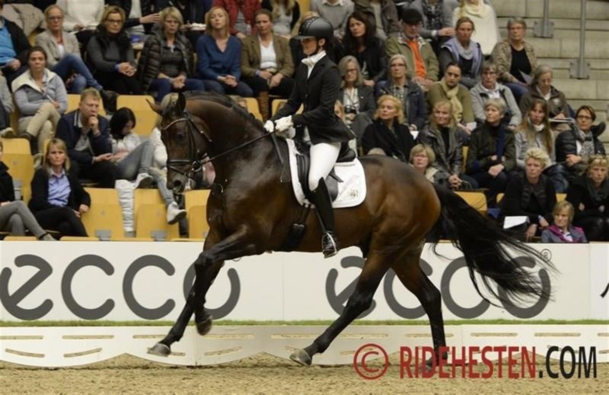 Den smukke 6-årige hingste Esperance e. Sorento/Rousseau fra Helgstrand Dressage viste sig igen i dag forbilledligt under berider Betina Jæger Jensen. Ekvipagen blev belønnet med 9,3 for galop såvel som kapacitet og 9,0 for trav og ridelighed. I alt blev det til 9,02 dermed en helt overlegen sejr til den elegante ekvipage.