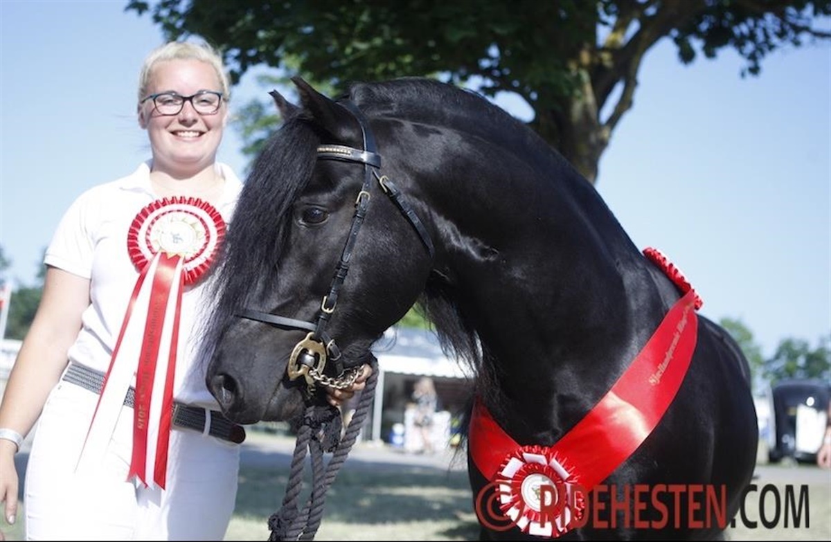 Dommerne løftede 10-taller i vejret for at hædre årets Sjællandspræmiehingst, da den blev trukket af banen, og dens 20-årige ejer Sabine Munksgaard var ét stort smil. "Tillykke" blev der råbt fra alle sider, mens de bevægede sig tilbage mod dyrskuepladsens staldområde, og hingsten vrinskede til svar, som var den helt stolt af sig selv. Det er en stor ting at vinde Sjællandspræmien, og det er ekstra tilfredsstillende for Sabine, fordi hun var så tæt på at vinde den ved sidste års dyrskue med samme hingst. I 2017 blev dartmoorhingsten Edals Vagant nummer to, og det var kun et enkelt point, der adskilte den fra vinderen. Men i år lykkedes det at vinde.
