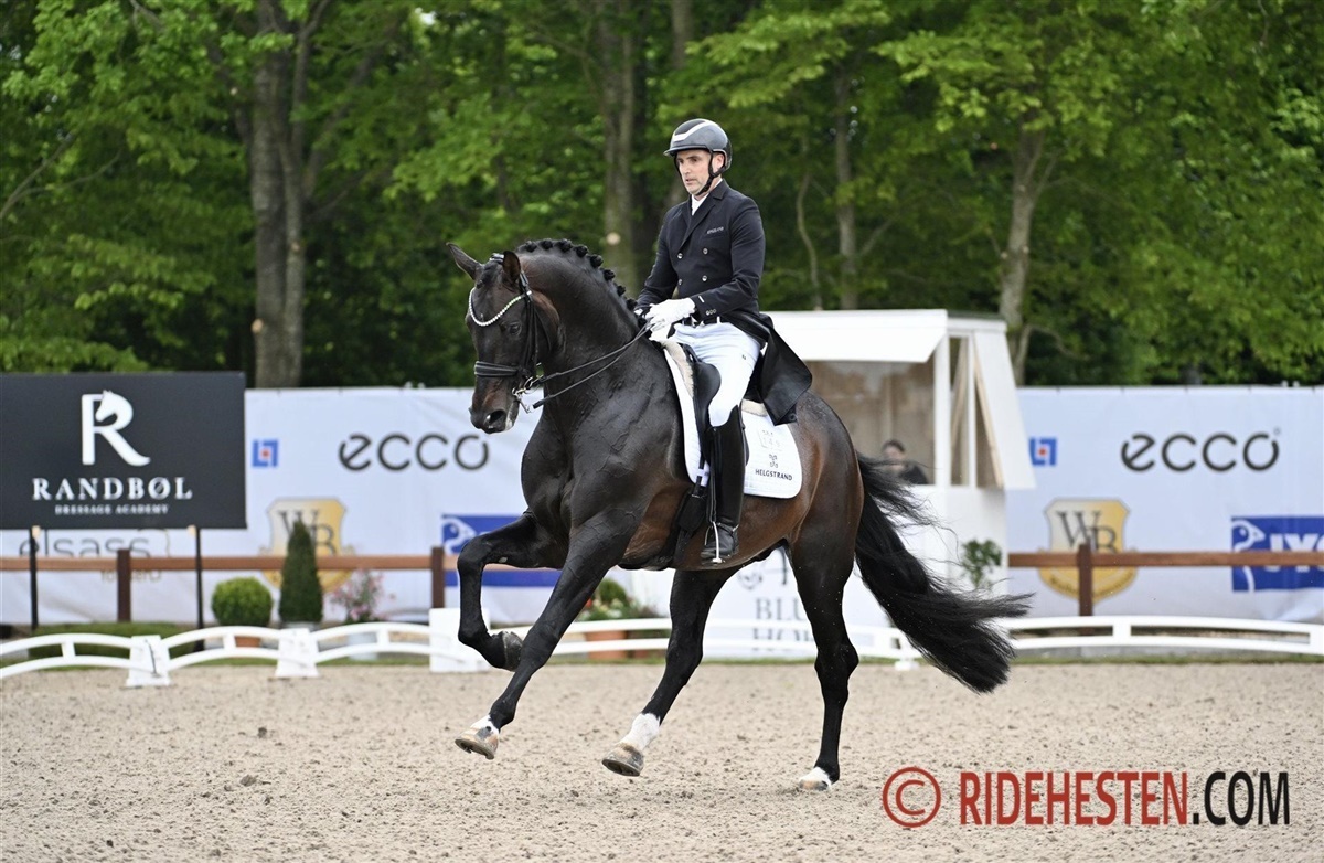 Galoppen er uden tvivl en af hingstens stærke sider, hvilket han viser i changementerne, hvor han virkelig springer flot henover jorden og laver lige store og rummelige changementer, ligesom den frie galop er særdeles vellykket. En smule samlede bagben i den første piruette, men lykkes fint i den anden. Overordnet set et rigtig fint program med rigtig mange højdepunkter. Hingsten virker mere afslappet i dag, og den erfarne ekvipage bliver da også belønnet med 75,289% og ind på en foreløbig førsteplads.