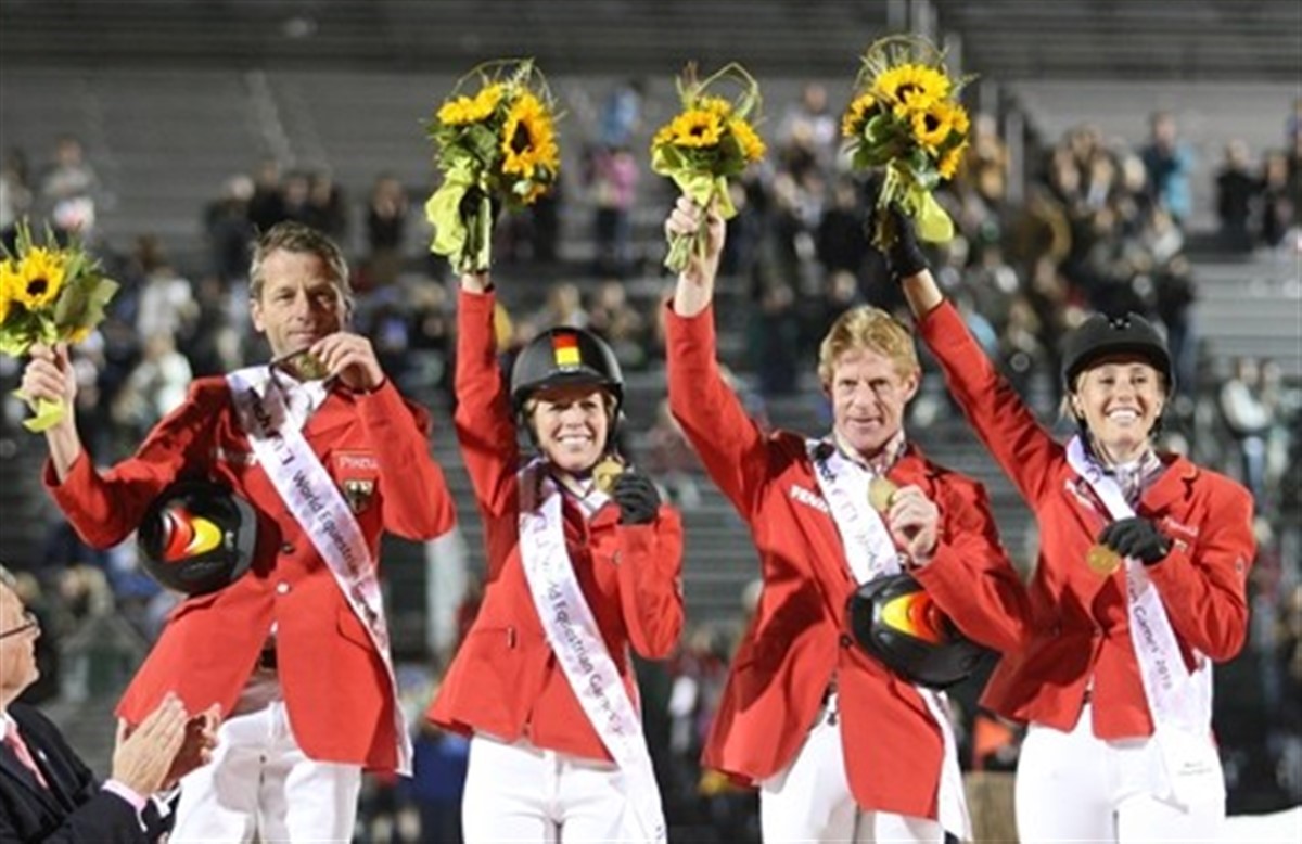 Med fejlfrie runder af Janne-Frederike Meyer, Carsten-Otto Nagel, Meredith Michæls-Beerbaum var tyskernes guldmedalje en realitet. Brasilien kom til finalen med en mulig sølvmedalje inden for rækkevidde, men den mistede de da deres sidste rytter Bernardo Alves fik fem fejl. I stedet for avancerede franskmændene fra femtepladsen til andenpladsen i kraft af fejlfrie runder af Olivier Gullon og Kevin Staut. Staut er regerende europamester og han fører Rolex verdensranglisten, men i tidsspringningen den første dag fik han flere fejl. - Jeg var så vred på mig selv, fordi jeg red så dårligt den første dag, så i dag var jeg fuldt fokuseret på at gøre en god indsats for holdet, fortalte Kevin Staut. De belgiske rytteres mål var en plads i finalen. Da den var opnået på en 8. plads begyndte rytterne at spekulere i en plads i top fem, der giver adgang til OL i London. At det skulle blive til en bronzemedalje havde de ikke forestillet sig.