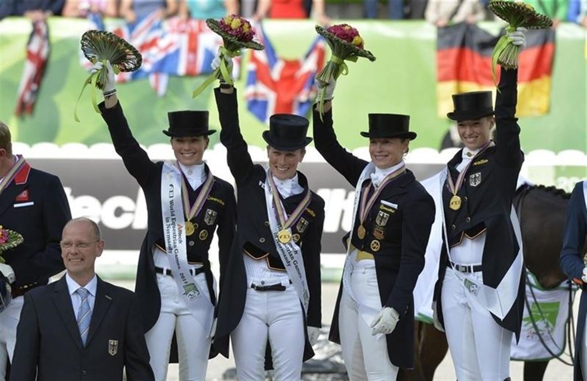 Tyskerne demonstrede skræmmende styrke i holdkonkurrencen på dressurbanen, trods startnummer et, holdt tyskerne alle konkurrenter bag sig, og kampen om medaljene blev en kamp om sølv og bronze.
