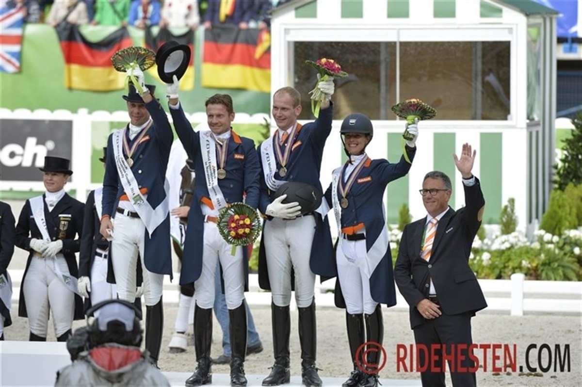 Det lykkedes for det ellers stækkede hollandske hold at fastholde en medalje, i år en af bronze med ialt 227,4 med 17-årige Jerich Parzival som bedste hest redet af Adelinde Cornelissen til en individuel fjerdeplads med 79,6%