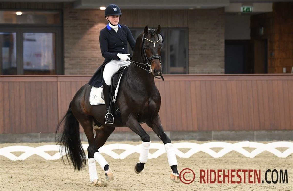 Med en distance på over 9% til nærmeste konkurrent satte Nanna Skodborg Merrald og den 9-årige hingst Blue Hors Farrell e. Fürstenball/ Dacapo sig på sejren i aftenens MA2 ved Solrød Rideklubs B-stævne i dressur. Ekvipagen leverede et fejlfrit ridt, hvor mange 9-taller og endnu flere 8,5'ere bevidnede om solide højdepunkter. Det resulterede i et samlet resultat på 78,860% for Nanna og Farrell, der i morgen har starttid kl. 16:32 i Intermediaire I.