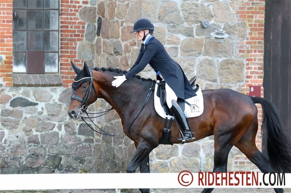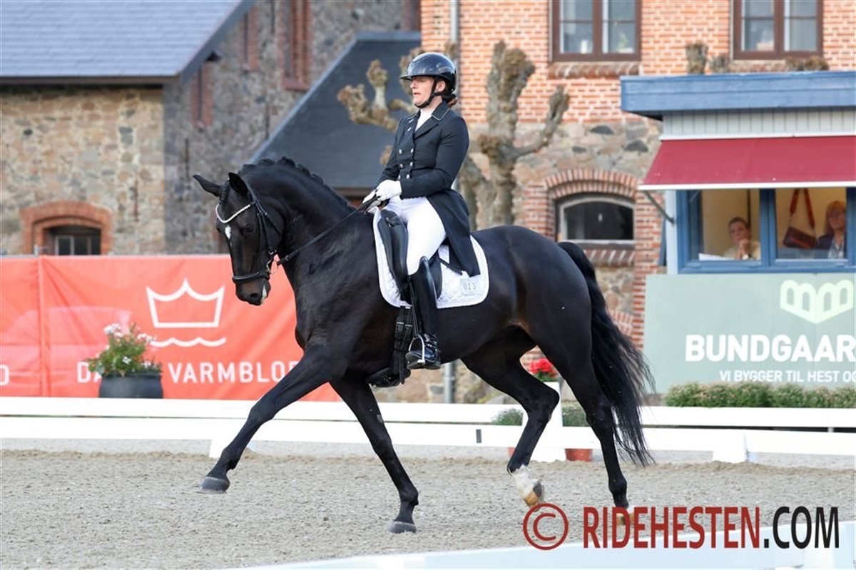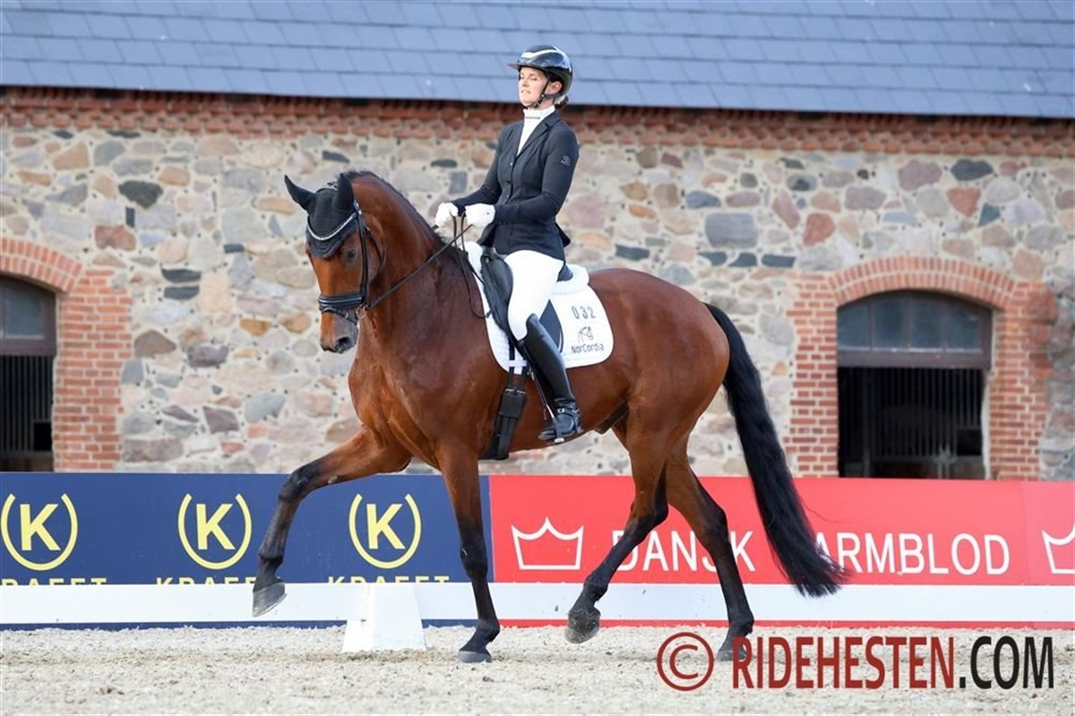 I går havde hun stævnedebut på avlshingsten Viva Vegas e. Viva Gold/ Rock Forever, der var i en liga for sig blandt de 4-årige heste med hele 97,167%. Nanna fortsatte 90%-stimen, da det her til eftermiddag gjaldt de 6-årige heste, der skulle bedømmes i FEI's 6-års indledende program. Blue Hors-rytteren kom til start på den kønne Hannoveranerhoppe Blue Hors Bonsai e. Blue Hors Baron/ Royal Classic (opdr. Irmgard Schmidt), der sidste år vandt championatsfinalen for 5-års heste. Dermed var der høje forventninger til ekvipagen, og det kunne også ses på antallet af tilskuere, der var dukket op på gårdspladsen for at heppe på Nanna og den røde hoppe. Ekvipagen leverede et pragteksemplar af en præstation, og det sikrede dem 9,7 for traven, 8,5 for skridten, 9,4 for galoppen, 9,5 i ridelighed og ikke mindst klassens eneste 10-tal i kapacitet. Alt i alt rakte det til 94,2% og en sikker førsteplads. Hoppen følger tilsyneladende i sporene på sin far, Blue Hors Baron, der tidligere på dagen vandt Intermediare 1 kür på samme stævnebane med en anden Blue Hors-rytter; Sophia Ludvigsen.