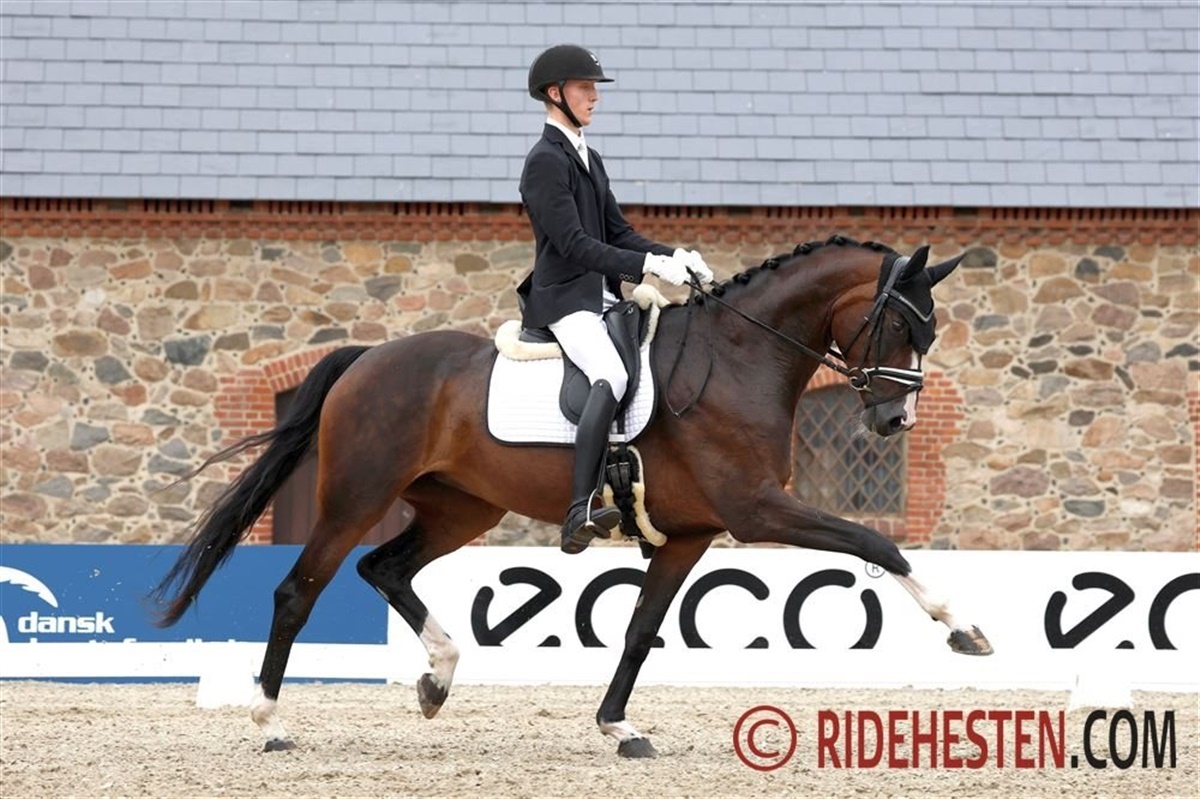 – Det er en virkelig aktiv og taktfuld trav, flotte øgninger og afkortninger, den måde som han reagerer på, når du samler op, viser også virkelig kvalitet. Den samlede skridt er rigtig aktiv og velfungerende, mens den frie skridt bliver en anelse kort, hvor han gerne må være lidt mere afspændt. Galoppen er kraftfuld og regulerbar med et flot afskub. Han står flot i formen, og der er virkelige mange højdepunkter. Han er lige lidt foran dig i serien, hvilket lige trækker lidt ned i ridelighed. Hingsten har så meget udtryk og wow-effekt, og det ser virkeligt spændende ud. Tak for fremvisningen, sluttede dommerne dagens sidste kommentar af med.