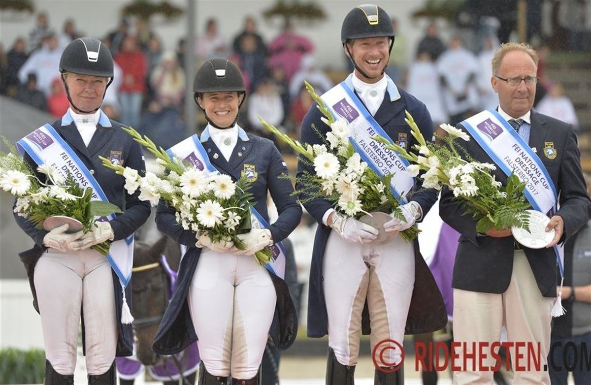 Det svenske hold kommer til at bestå af den A-kæde, som sejrede i Nations Cup i Falsterbo Rose Mathiesen, Tinne Vilhelmson Silfvén og Patrik Kittel, de får selskab af Therese Nilshagen, der sidste år var udtaget til OL i Rio på Dante Weltino som i Aachen gik Grand Prix til 71,2% og der er mere at hente i ekvipagen endnu, spår den svenske holdleder.