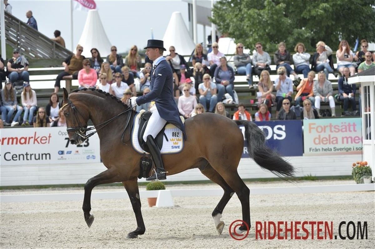 Patrik redet sikkert kontrolleret program til 73,3% og det så ud til at Helen Langehanenberg ville gå forbi, men i den anden piaffe stoppede Damsey og slog efter schenklen, det betød at hun sluttede på 67,96% Alt i alt sikrede danskerne sig derfor en flot placering som nummer to ved Nations Cup'en efter det svenske hold der kunne juble på hjemmebanen over sejren.