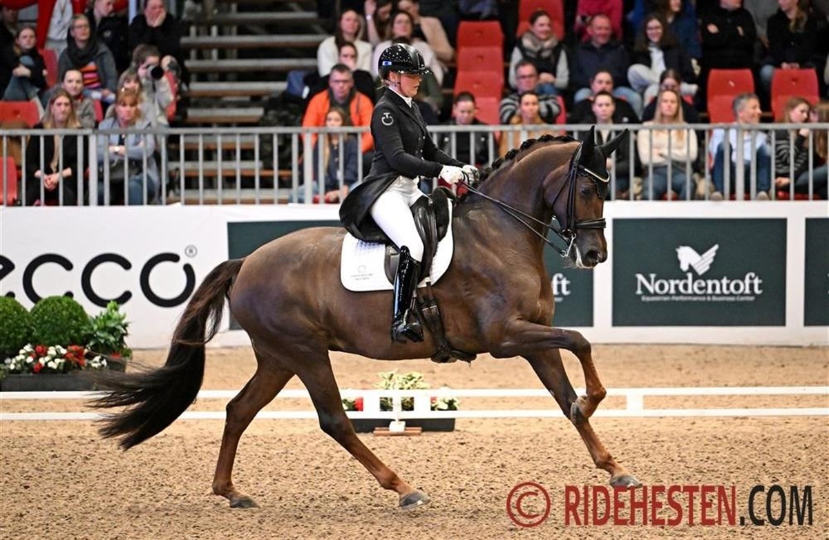 Den mørkerøde vallak så vældig afslappet og tilpas ud i de imponerende rammer, og det lader ikke til at genere ham, når der er mange mennesker og uro på lægterne. Mange af øvelserne lykkedes supergodt, men i og med det er hans debut på 3-stjernet niveau er der naturligvis også masser af udviklingspotentiale – og fremtiden ser uden tvivl lys ud for det 9-årige talent.