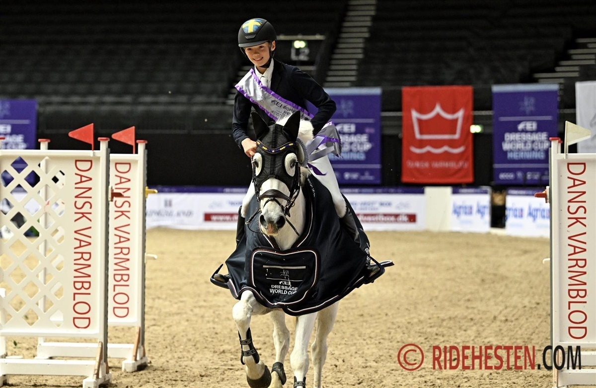 23 ekvipager mødtes i dag i FEI Jumping Ponies Trophy Grand Prix, hvor den svære bane gav en del udfordringer. Fire lykkedes med at ride fejlfrit i hovedrunden og dermed skulle de ride om sejren i omspringningen. De første tre ekvipager fik alle fejl, og dermed skulle Viggo Bergstrand ”blot” ride fejlfrit for at sikre sig sejren. Det gjorde han i fin stil i sadlen på Gaoth Mhara Lad, og dermed sikrede han sig sejren.