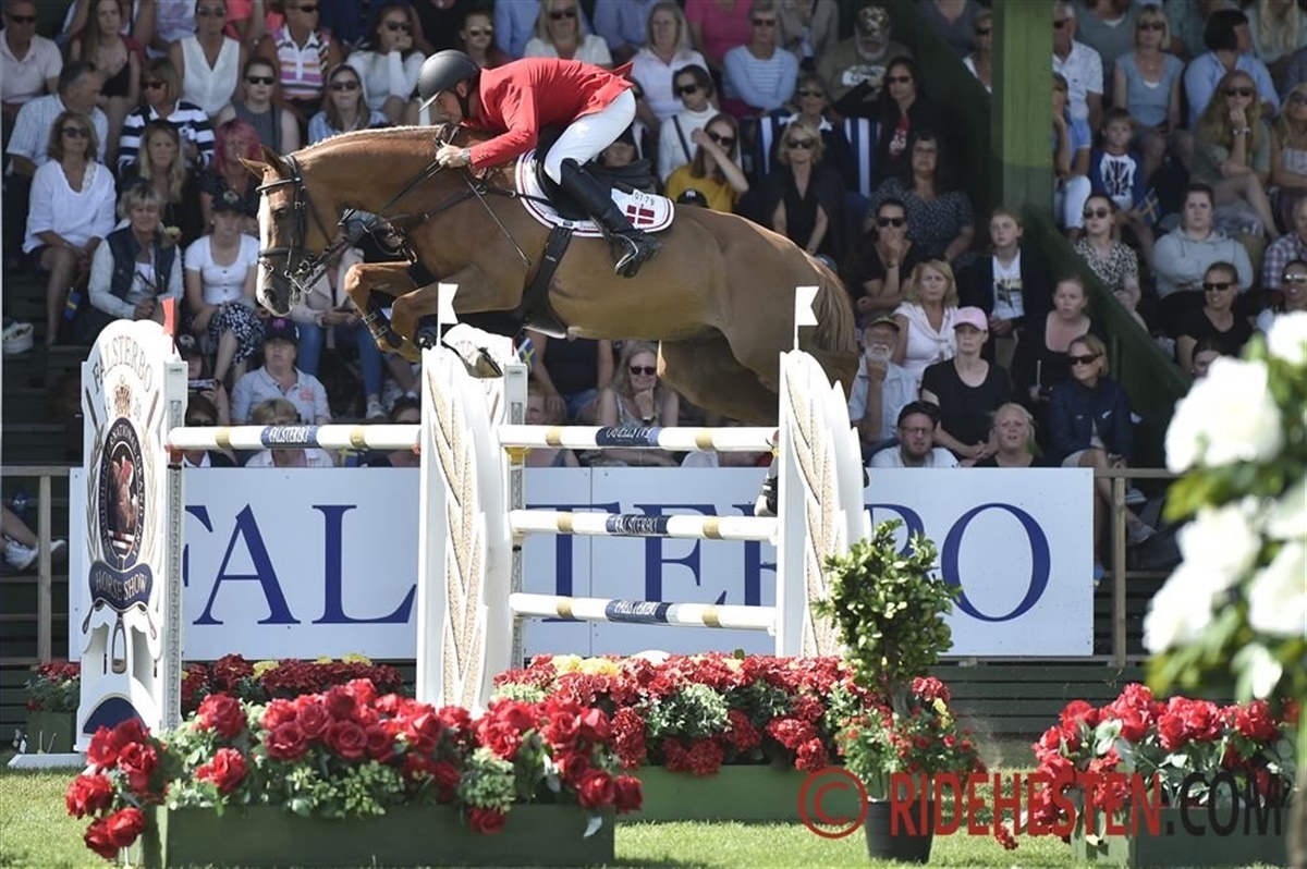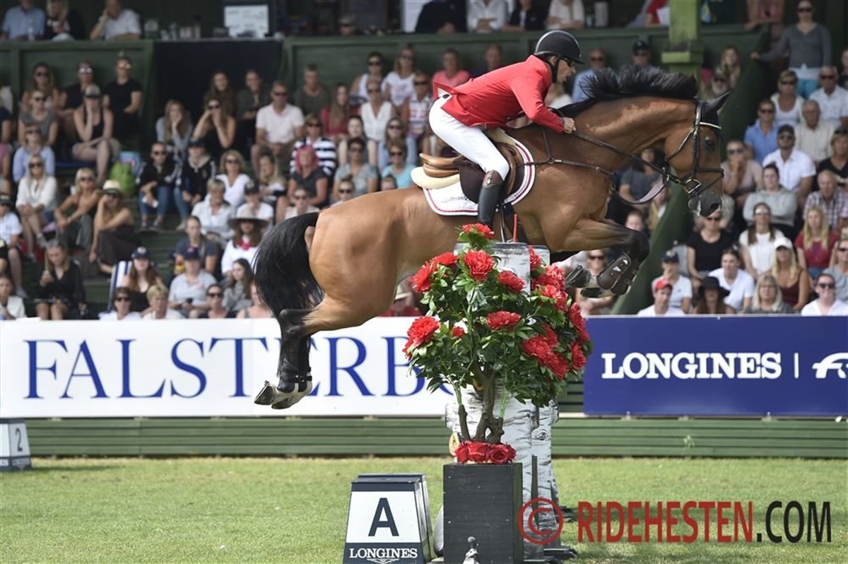 Forinden havde Malin Baryard-Johnsson redet to fejlfrie runder, mens Frederik Jonsson fik et nedslag i begge runder. I første runde redStephanie Holmen fejlfrit i sikker stil, men i anden runde fik hun 12 fejl, og dermed satte hun Peder Fredricson under pres. Han sidder dog på en af verdens, om ikke verdens, bedste hest, H&M All In, de er regerende Europamestre, og så fik de to sejren i fredagens Grand Prix i Falsterbo. Det tusindtallige publikum holdt vejret, mens Peder overvandt den ene forhindring efter den anden, og da han ladede fejlfrit efter den sidste lød der et forløsende brøl fra publikum.