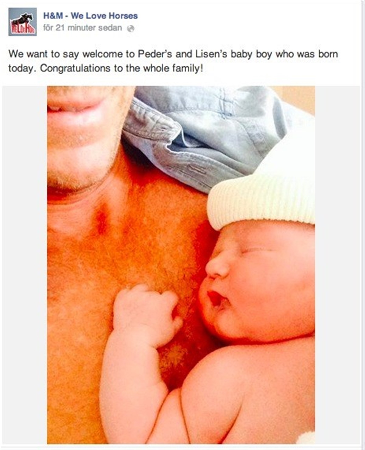 Nyheden spredte sig hurtigt på de sociale medier, hvor Fredricsons sponsor lagde et billede op af den lille ny.