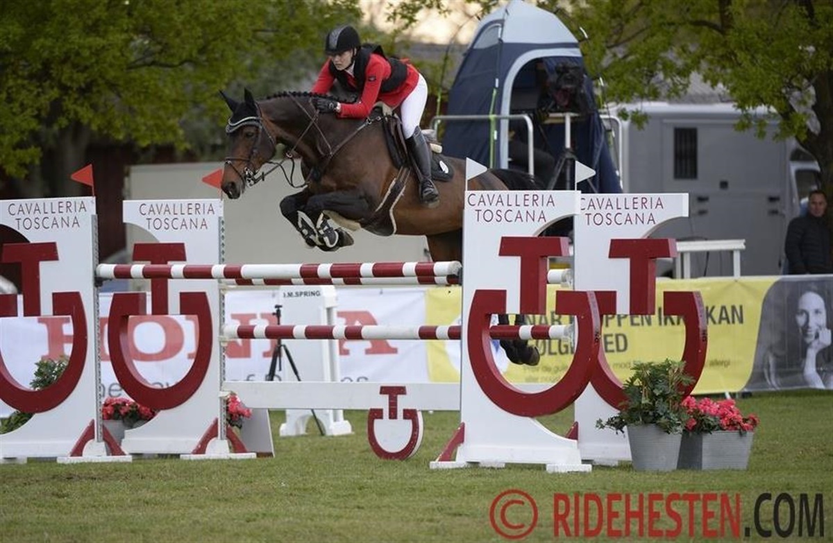 Maria Hjort Frederiksen og Miss Holsteins Manifique var igen lørdag aften i konkurrence mod vores svenske naboer, der placerede sig på de første otte pladser i klassen. For Maria blev det til en 9. plads i 140 cm-klassen