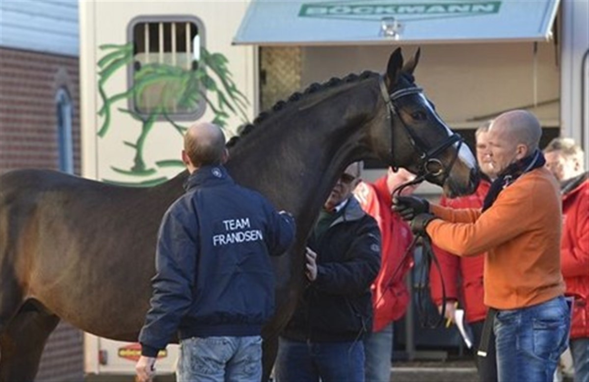 Det var syv meget veloplagte unghingste, der i dag blev præsenteret for avlsledelsen, dyrlæge Hans Schougaard og træningsleder Torben Frandsen på Tørring Ridecenter ved Randers. Hingstene var rigtig i humør da de blev mønstret ude, hvor vintersolen og nogle få varmegrader fik humøret i vejret både hos hingstene og de få tilskuere, der havde fundet vej til dagens indsyning. De syv hingste skal de kommende godt 30 dages testes for temperament og ridelighed samt have deres talent for enten dressur eller springning vurderet. Hingstene skal rides af Torben Frandsen selv, han forventer at starte dagen med unghingstene omkring kl. 7.30, fortæller han. Hingstene er allerede faldet godt til ro i de store bokse på ridecenteret, og der var en fornøjelse at følge dem under dagens indsyning. Der er indsynet to hingste af springafstamning og fem hingste af dressurafstamning. De fem hingste har i 2012 opnået adgang til afprøvning, men er af forskellige årsager ikke blevet sendt til 35-dages test i efteråret. En enkelt hingst blev udtaget til kåring ved forbesigtigelsen, men nåede ikke frem til kåringen, mens en enkelt hingst ikke har været fremstillet. Samtlige hingste opførte sig særdeles eksemplarisk under rytter, og generelt var det et lille, men særdeles interessant hold unghingste, der nu skal afprøves. Afslutningen og den endelige eksamen finder sted den 5. februar.