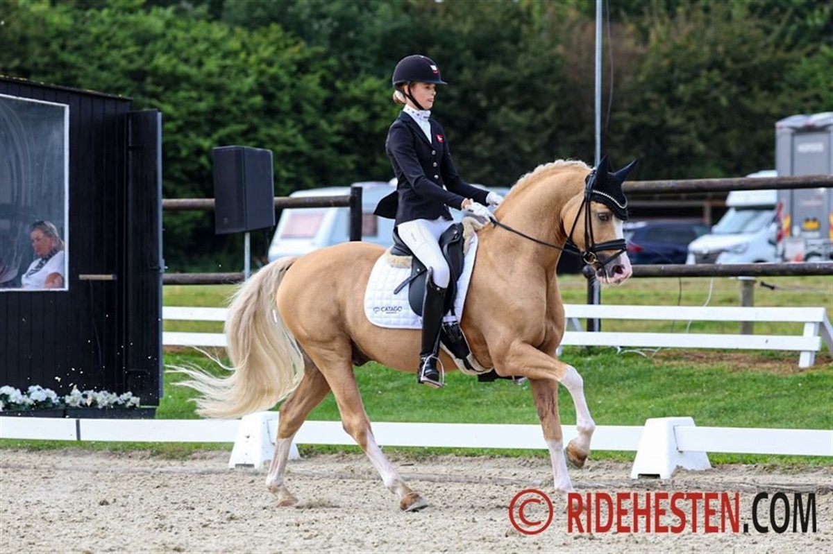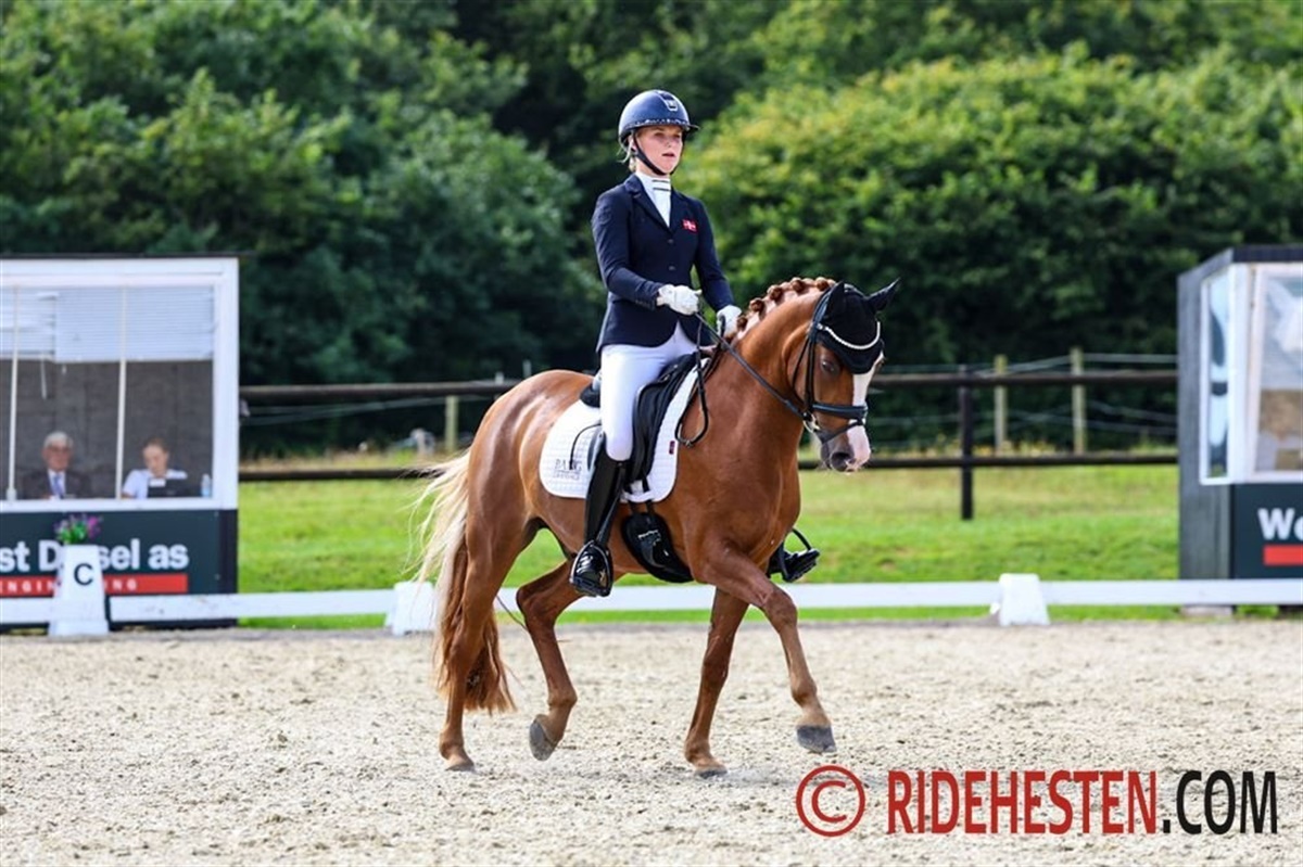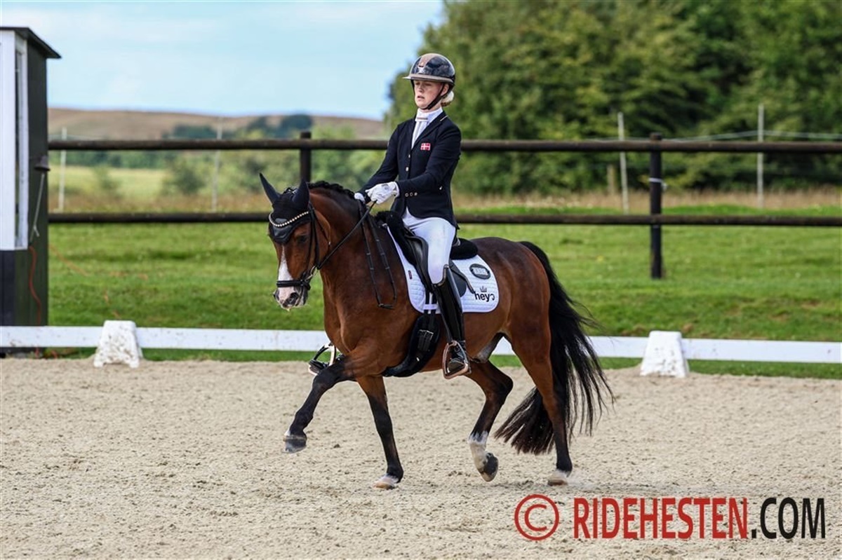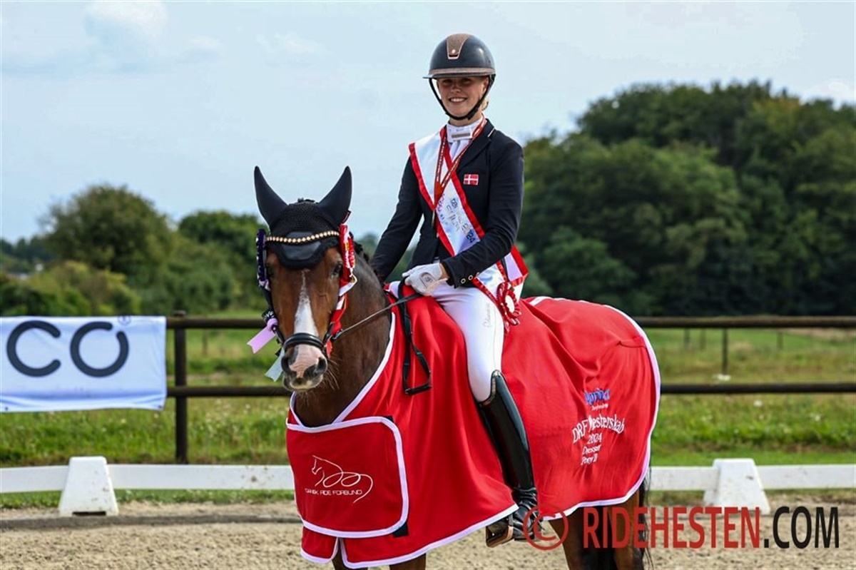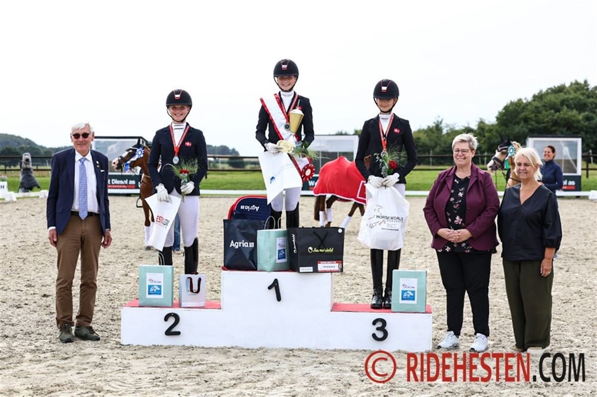 Mindst lige så tæt var det hos kat. I ponyerne, hvis mesterskab også blev afgjort her til eftermiddag. Niveauet var desuden særdeles højt over hele linjen i finalen, hvor de 11 bedste ryttere alle havde et gennemsnit på over 70%. DRF-mesteren for kat. I 2024 i ponydressur blev som sidste år Sofia Rosenkilde og Cosmo Royale e. Cosmopolitan D/ Casino Royale K, der også var med på det danske sølvvindende hold ved årets EM. De tog sejren i går med 74,282% i den indledende PRM-klasse, og selvom de blev slået af Victoria Bang Zindorff og Del Classico e. D-Day AT/ Classic Dancer I i dagens kür, var deres samlede præstation nok til at ride guldet hjem endnu en gang. De fik 149,782%, mens Victoria og Del Classico efter dagens kür til 76,000% endte på 149,179%, ikke langt efter. Det gav dem altså sølvmedaljen, hvilket i øvrigt er Victorias anden DM-medalje i år. Hun vandt nemlig DRF-mesterskabet for juniorer tidligere på året. Bronzemedaljen gik til Filippa Jæger Jensen på Crown Charm of Royal e. Casino Royale K/ Monte Christo, der avancerede fra gårsdagens fjerdeplads og dermed red sig ind i medaljerækken. Hun fik alt i alt 146,708%.