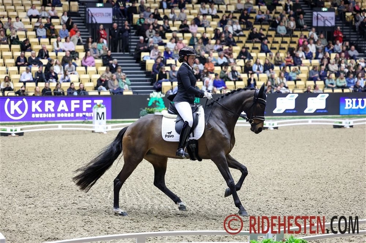 Nordstrands Quinoa e. Quaterhit/ Blue Hors Hertug (opdr. Gitte Nordstrand Larsen) og Michaela Navrsted er den sidste ekvipage, der med 502,00 ligger i den tætte top. Hoppen fik 8,5 for skridt og trav, 8,0 for galop og ridelighed samt 8,5 for kapacitet. Derefter er der omkring ti point ned til de næste.