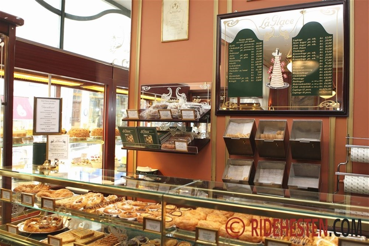 Udstillingsvinduet bugner af kager og lagkager med eventyrlige navne, som Kanneworfflagkage, Sachertorte, Det Gyldne Tårn, Æblelagkage og konditoriets verdensberømte Sportskage, som vist ikke har så meget med sport at gøre, og dertil de små fine kager, som står i sirlige rækker under disken, med berømte og royale navne, som Prinsesse Thyra, Carl Nielsen, Margrethekage og Sarah Bernhardt.