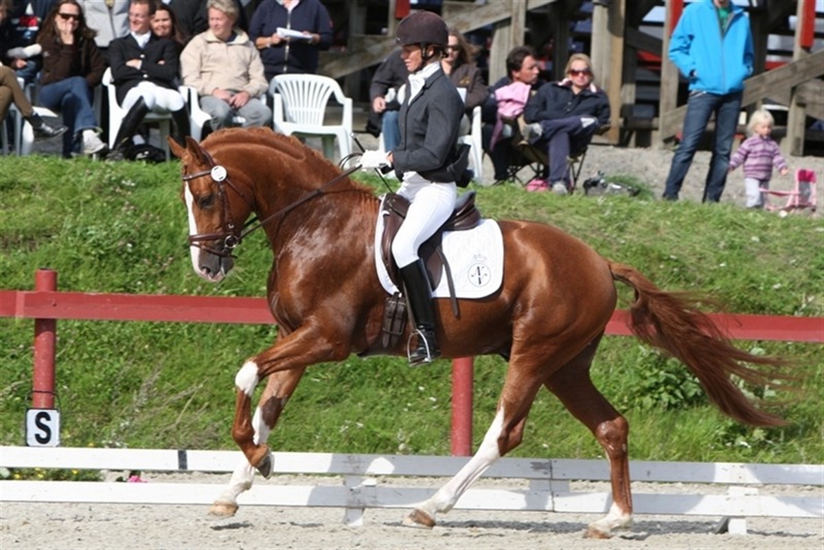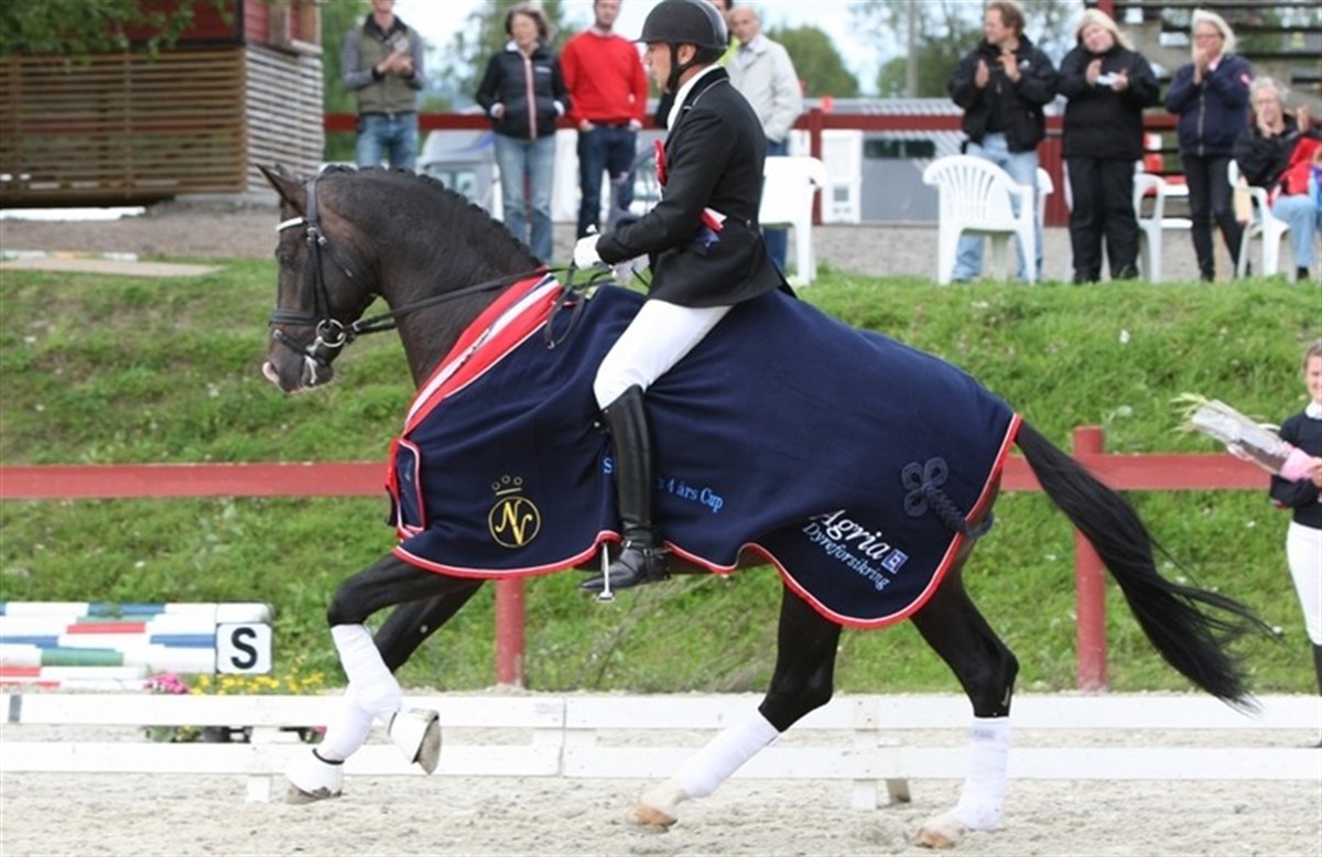 Med blandt andet karakteren 10 for ridbarhed var sejren til Temptation e. Tuschinski og Michæl Grønne Christensen klar. Den sortbrune hingst tryllebandt både publikum og dommere og opnåede hele 92,125 %! Den norskfødte hingst Vivelstads Renoir e. De Noir/Resident viste sig også meget godt og tog andenpladsen i klassen med 86,250 % foran Tailormade Red Rebel e.Blue Hors Romanov/Donnerhall, som endte med 83,888 %. Fjerdepladsen gik til Louise Almlund Løkken og hingsten Mr. Gold G e. Milan og som nummer fem blev den norskkårede hingst Tobajo Pik Disney e. Tobajo Picez med sin rytter Trude Hestengen. Af Line Moen, Ridehesten Norge.