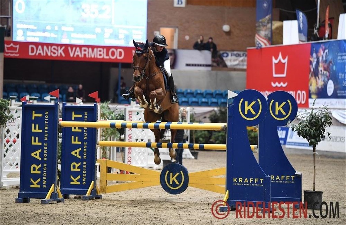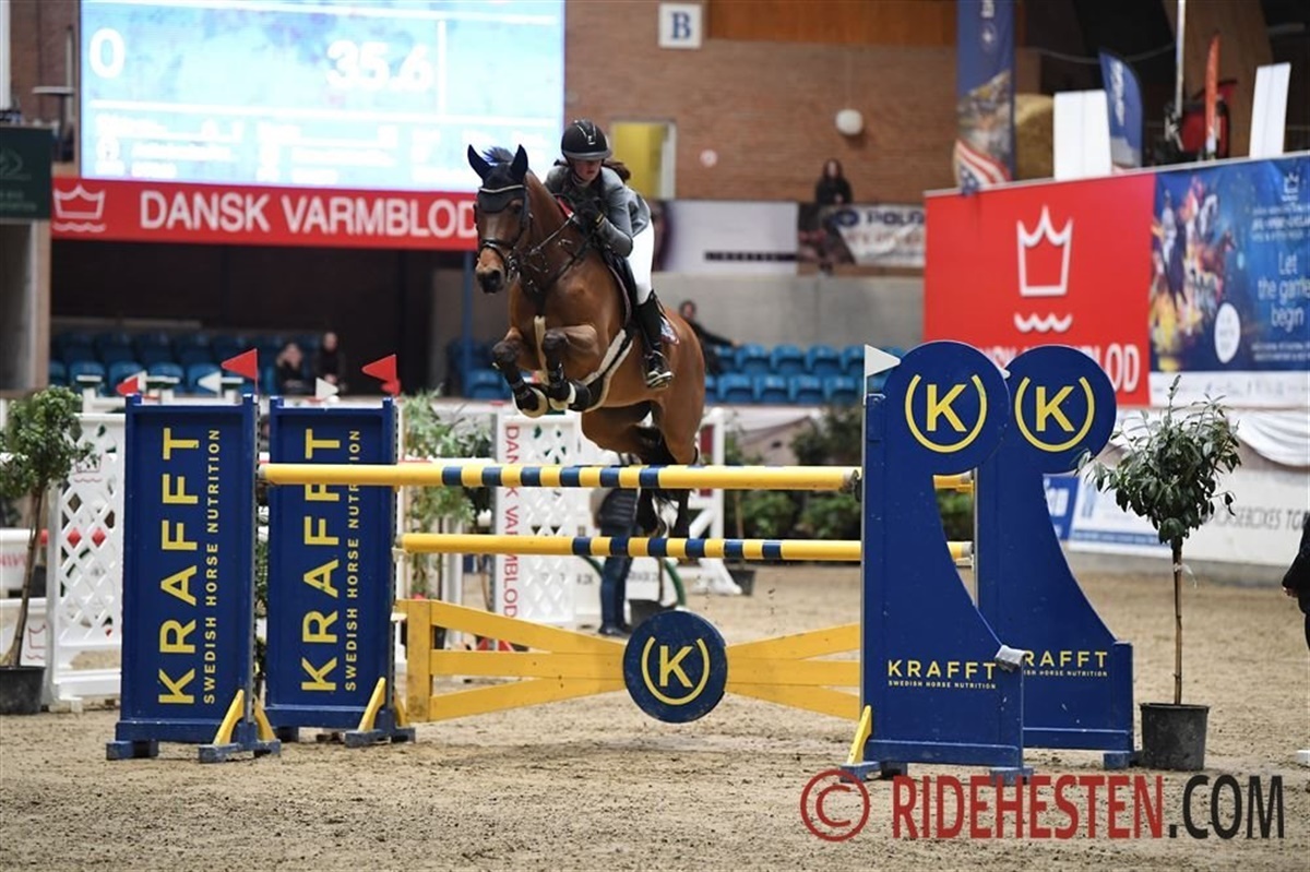 På andenpladsen og femtepladsen blev det nemlig Camilla Mortensen. På andenpladsen placerede hun sig med Handybeat e. Heartbeat/Diamant de Semilly (opdr. Carsten Carstensen) efter et fejlfrit ridt i tiden 63.39. Senere i klassen kom Camilla på banen med sin anden hest Daranta e. Heartbreaker/C-Indoctro og med den velspringende hoppe placerede hun sig som nr. 5.