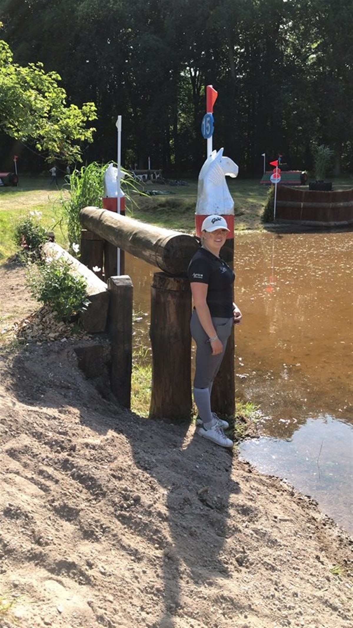 - Det er en virkelig velbygget og enorm flot bane, men det er også tydeligt, at det er en mesterskabsbane, og ikke blot en almindelig 3*. Den er stor og fyldt med en masse tekniske spørgsmål. Der er faktisk ikke rigtigt noget spring, som man kan kan “slappe af” på. Tiden bliver også en udfordring, fordi størstedelen af banen ligger i skoven. Når man rider i en skov, føles det ofte som, at man rider meget hurtigere end man egentlig gør, fordi træerne suser forbi. Derfor kan man godt blive snydt til at ride lidt under tempo, fortæller Sara, der håber håber på en solid fejlfri runde på terrænbanen.