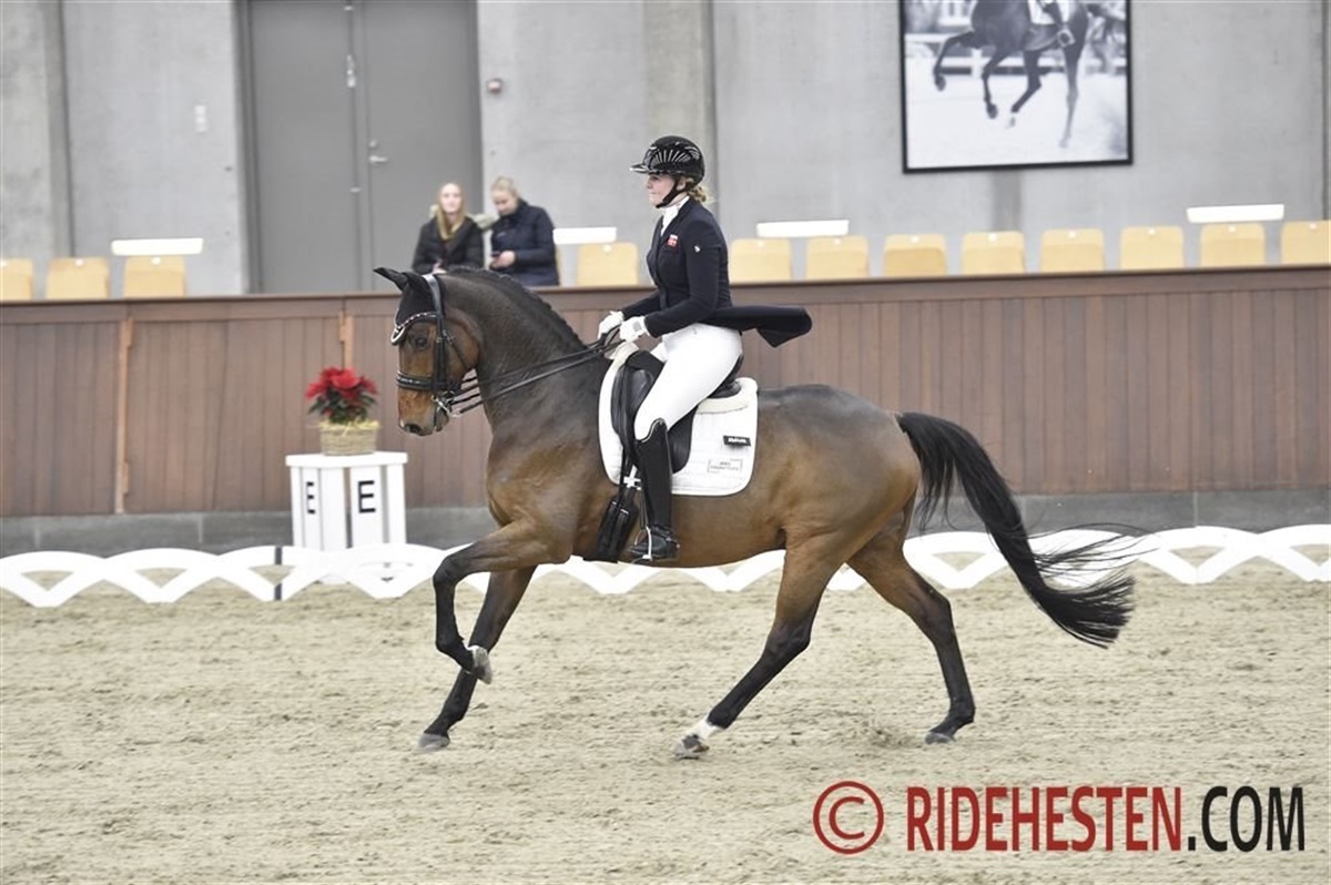 – Jeg var egentlig meget tilfreds. Han var lidt frisk både på opvarmningen og på banen, men jeg kunne sådan nogenlunde håndtere det. Der var lidt uenighed hos dommerne, som havde mig på henholdsvis 72,6%, 72,3% og 69,8%, men sådan er det nogle gange, og så længe man bare selv er tilfreds, er det jo det vigtigste, siger Thea om dagens ridt.