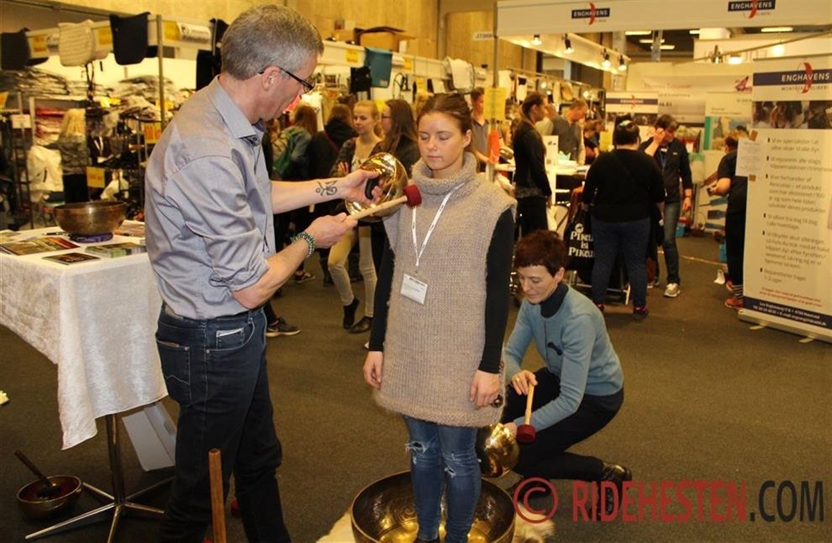 Interessant ser det ud, når Lotte Koch fra Klanguniverset slår løs på skålene, – Vibrationerne fra de tibetanske skåle påvirker alle celler og kroppens bindevæv, det virker afstressende og fjerner ubalance – både fysisk og psykisk, informerer hun. Klanguniverset er den eneste af sit art i Danmark, men behandlingsformen har ifølge Lotte Koch været benyttet i Tyskland i de sidste 50 år, både på ryttere men også på heste. – En klangbehandling løsner blokeringer hos både hest og rytter, og efter at have været påvirket af skålenes vibrationer, bliver man ”groundet” eller 0-stillet om man vil.