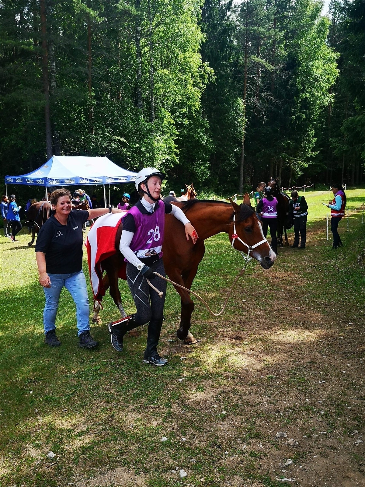 Vi ankom til Estland natten til torsdag, og nåede at sove et par timer inden vi skulle ud til hestene. Jeg var som sagt den eneste dansker til start ved stævnet, men heldigvis var der mange norske ryttere til stede, som vi kunne støtte os op af. Jeg var helt vildt spændt på, at se Shanameh igen, da det var et halvt år siden jeg havde set hende sidst. Den norske landsholdstræner og -dyrlæge var med, og han tjekkede alle hestene igennem. Efter tjekket af hestene, tog vi ud og fandt et supermarked, så vi havde mad til de næste par dage. Efterfølgende tog jeg og Shanamehs ejer ud for at ride en tur, mens vores hjælpere kørte ud for at tjekke ruten og hjælperpunkter. Det er vigtigt at hjælperne ved hvor punkterne er, de har helt styr på hvor de skal køre hen på stævnedagen. Shanameh var meget frisk på rideturen, og var vist glad for at komme ud og strække benene efter den lange køretur. Efter rideturen fik hestene lov til at slappe af på folden.