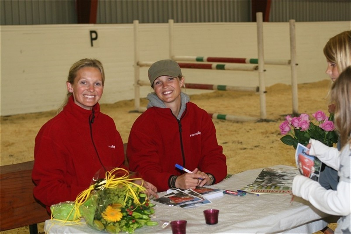 - Vi er nået til, hvor vi er i dag via rigtig hårdt arbejde. Vi har ikke kunnet sige, at vi ønskede os den og den World Cup-hest – dem har vi selv måtte ride frem, fortalte Tna og Charlotte de mange fremmødte ryttere under clinicen på Lefdals Rideskole, som blev arrangeret i samarbejde med hestetrailerproducenten Brenderup. Tina og Charlotte har også stor nytte af hinanden i deres træning og stævnevirke. - Vi er gode, fordi vi er et så godt et team. Vi hjælper hinanden, og vi supplerer hinanden. Charlotte er teknisk god, jeg er stærkere – det er en god kombination. Vi kender hinanden ud og ind – det er en unik fordel, sagde Tina. - Ønsker du at satse, må du også være villig til at ofre. Denne sport tager lang tid, men vil man, så kan man, lød det fra Tina. 3 springryttere på heste fra 5-års til erfarne konkurrenceheste stod for demonstrationen under clinicen. – Det kan siges helt enkelt. Der er fire ting, en springrytter skal kunne: Det er at svinge til højre, svinge til venstre, ride frem og ride tilbage, fortalte Tina. For at træne øjet til at bedømme afstand anbefalte Tina og Charlotte at ride bomme. - Dette er også vældig nyttigt på ungheste, fortalte de.