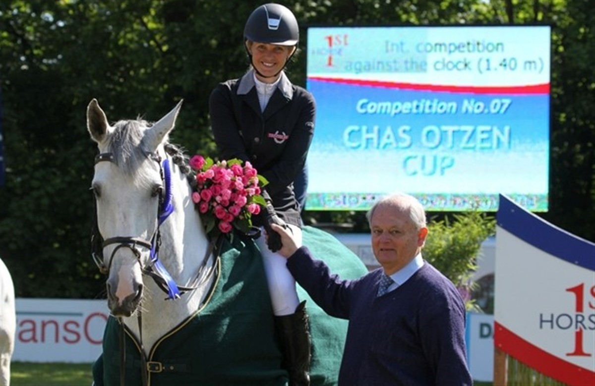 Med 55 ryttere på startlisten var der kamp om topplaceringern i Chas Otzen Cup her til morgen i Bernstorffsparken. Tina Lund og Amaretto var fejlfrie og hurtigst selvom hun blev presset af en italiensk og spansk rytter. Jennifer Fogh Pedersen og Kashmira leverede også en sikker 0-runde i en tid, der rakte til fjerdepladsen. Endnu en dansk rytter blandede sig i placeringerne, idet Eva Kragh Pedersen og Chinatu LS La Silla var fejlfrie til 13. pladsen. Ved middagstid begynder en spændende gruppespringning, i eftermiddag skal ponyrytterne i aktion på banen og så afsluttes dagen med en 1,50 m klasse - Selene Finans Cup, der er kvalifikationsklasse til Grand Prix'en.