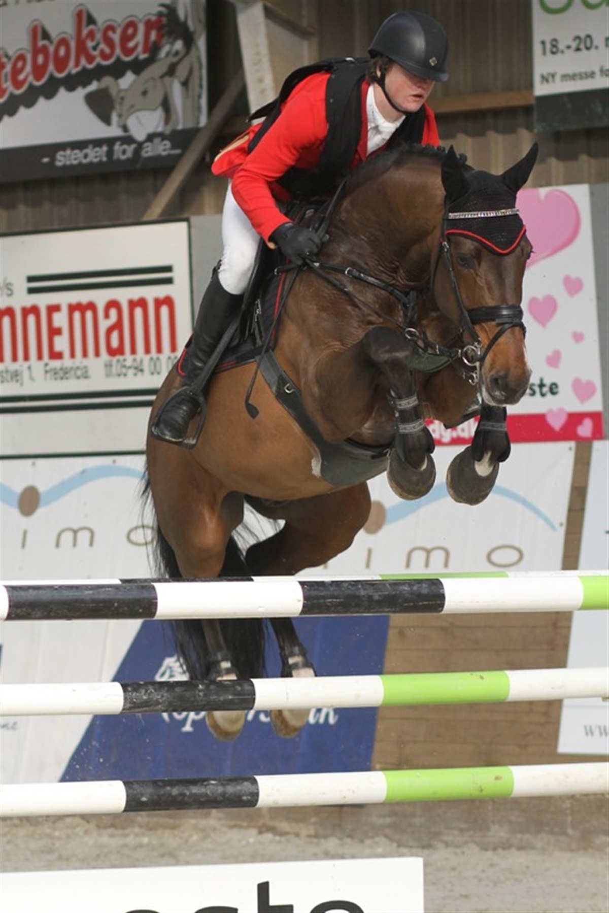 Fredericia Rideklub afsluttede i dag deres flot arrangerede B-stævne i springning med manér. Det var nemlig årets danske mester i indendørs springning, der skulle findes. I dag blev den sidste og afgørende del af Indendøres DM afviklet. Indtil i dag lå Rikke Haastrup Pedersen og Coqueluche i spidsen, idet de i går vandt 1. afdeling suverænt. I dagens afgørende afdeling endte ekvipagen desværre med 15 fejl. Men fem andre ekvipager var fejlfrie og skulle konkurrere i en omspringning. To af disse var to unge ryttere på bare 18 år; Kasper H. Hansen på Cantando Lyngriis og Camilla Fliedner Ernst på Monique. Blandt de mere garvede var; Carsten Ganderup og Littel Rock, Jennifer Fogh Pedersen på Linnea Ask og Tina Lund på Zamiro. Kasper H. Hansen lagde flot ud med en fejlfri og hurtig runde i omspringningen. Han og Cantando Lyngriis sluttede med tiden 30,94. Camilla Fliedner Ernst på Monique fik en ærgerlig nedrivning, og måtte dermed sige farvel til DM-titlen. Jennifer Fogh Pedersen red en sikker fejlfri runde på den kun 8-årige Linnea Ask. Desværre var tiden ikke helt hurtig nok. Carsten Ganderup og Littel Rock gjorde hvad de kunne, men tiden på 33,74 var ikke helt hurtig nok til at slå den unge Kasper H. Hansen. Tina Lund og Zamiro var sidste ekvipage. Der var spænding til bristepunktet i hallen da de snurrede banen igennem på suverænt hurtigste tid, nemlig 29,97. Tina lund kunne dermed endnu en gang bryste sig med en DM-titel og Kasper H. Hansen med en flot og velfortjent andenplads. Fredericia Rideklub kunne være stolte over det flot arrangerede stævne med mange sponsorer og flotte doteringer.