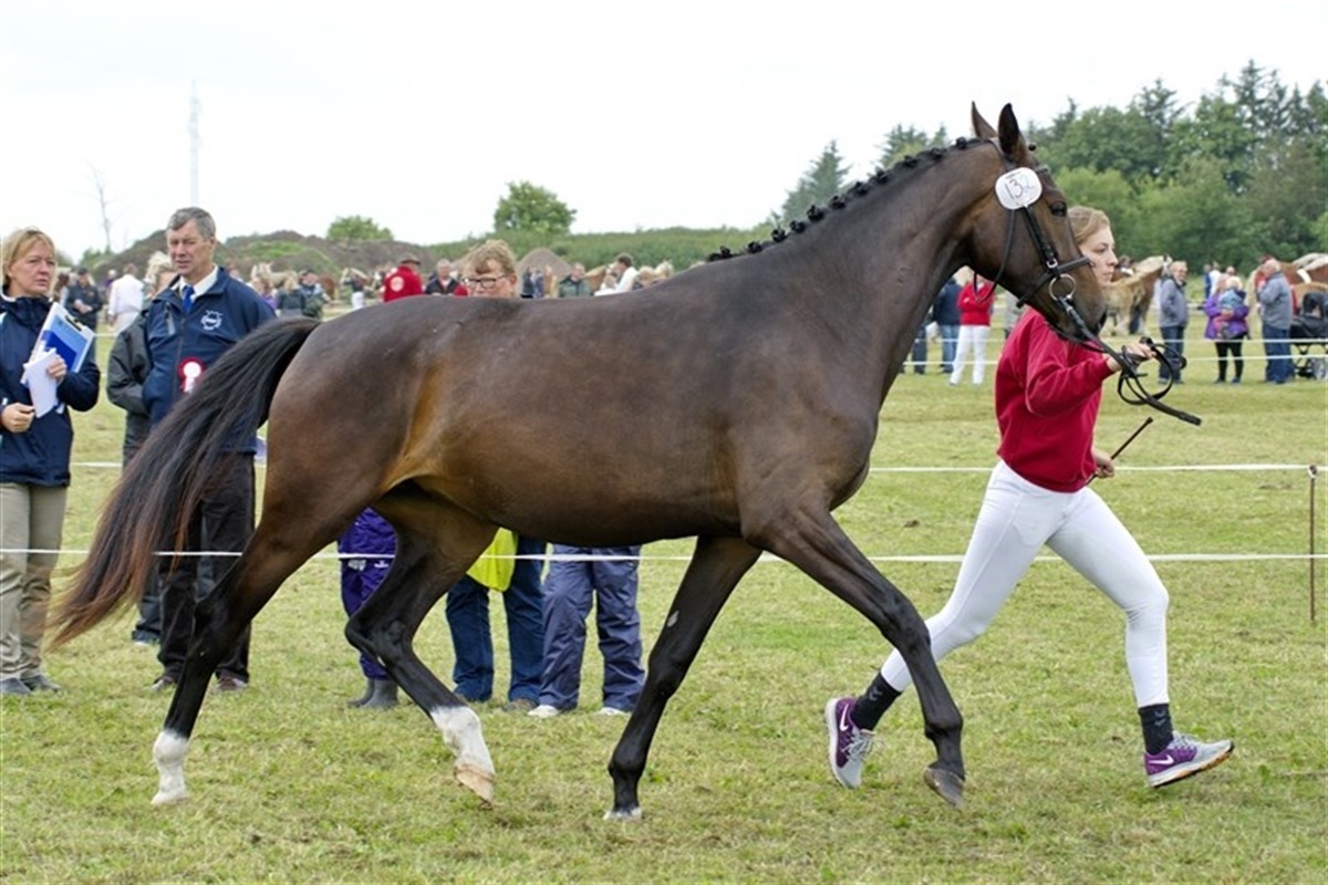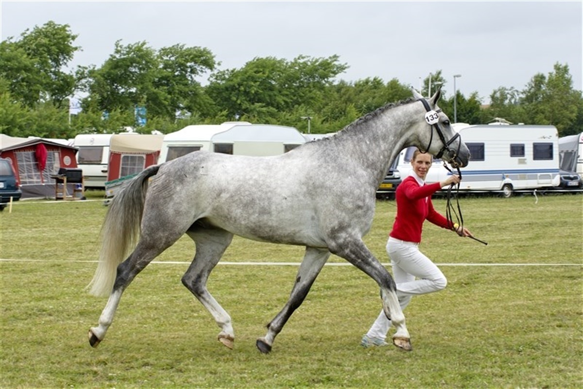 Blandt hingstene stod den danske oldenborg Højvangs Turbo på fløjpladsen. Den kårede hingst er e. Temple Wind xx/ Claudie Damsgaard.
