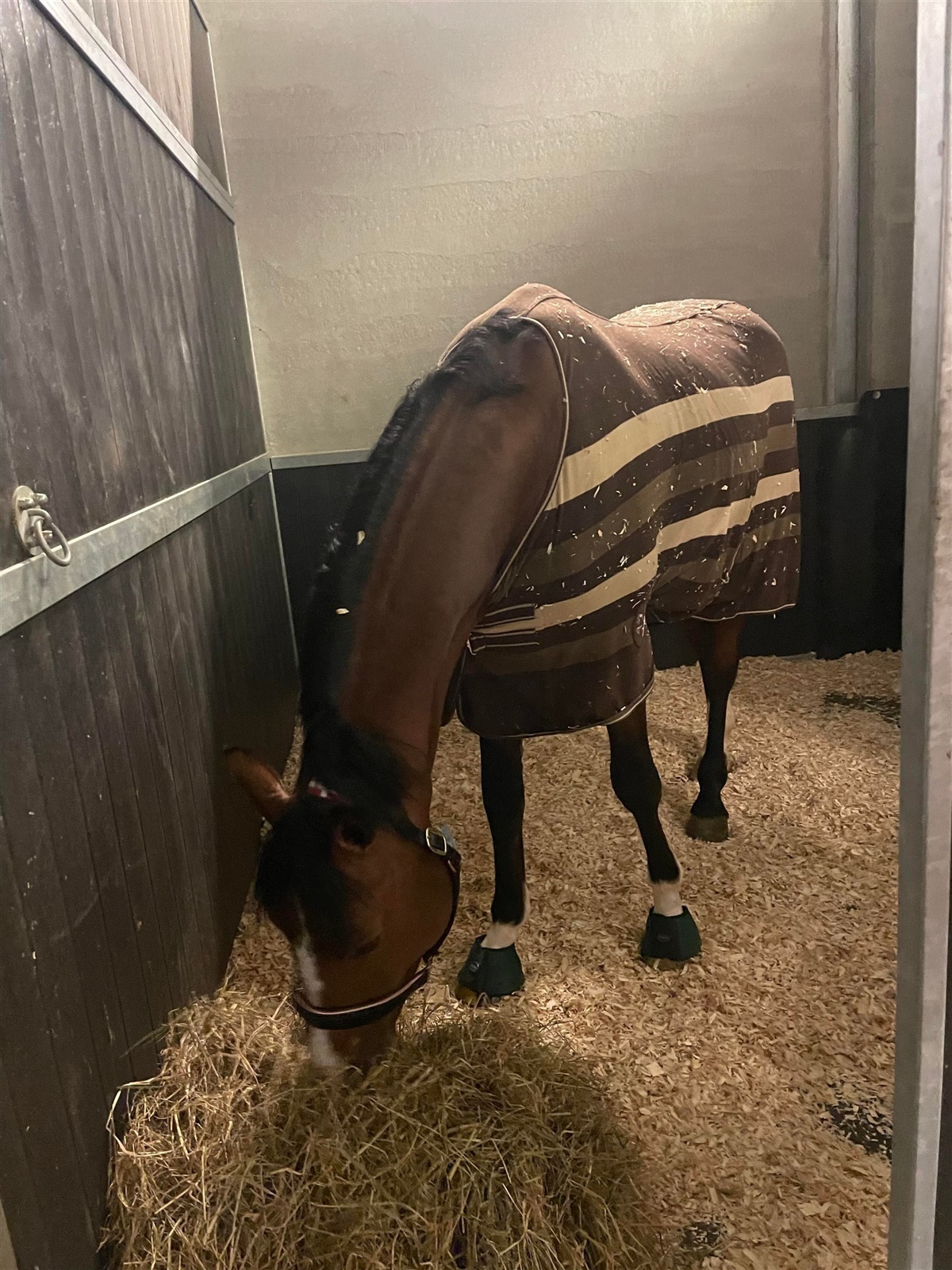 – Vi fik os dog lidt en forskrækkelse, da Brunello besluttede sig for at springe over bommen i boksen på flyet. Heldigvis var en dygtig og professionel groom med, og han trådte hurtigt til og fik bommen af og Brunello tilbage på plads. Det så lidt voldsomt ud, da de landede med blod og skrammer, men alt var heldigvis overfladisk.