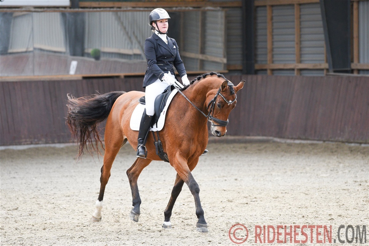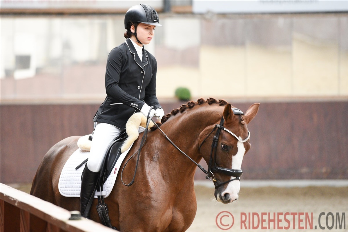 Her var det først Anja Winther Kortsen på Watch Me e. De Noir/Argentinus, som indkasserede den flotte procent på 67,632. Frida Langer Brøggler med Piece of Art e. Blue Hors Romanov/Blue Hors Cavan red ind som andensidste ekvipage i klassen, og sørme om denne ekvipage ikke også formåede at ride til 67,632%. Anja og Frida endte derfor dele første pladsen, og Liv måtte ned på en tredje plads som følge af denne procentlighed.