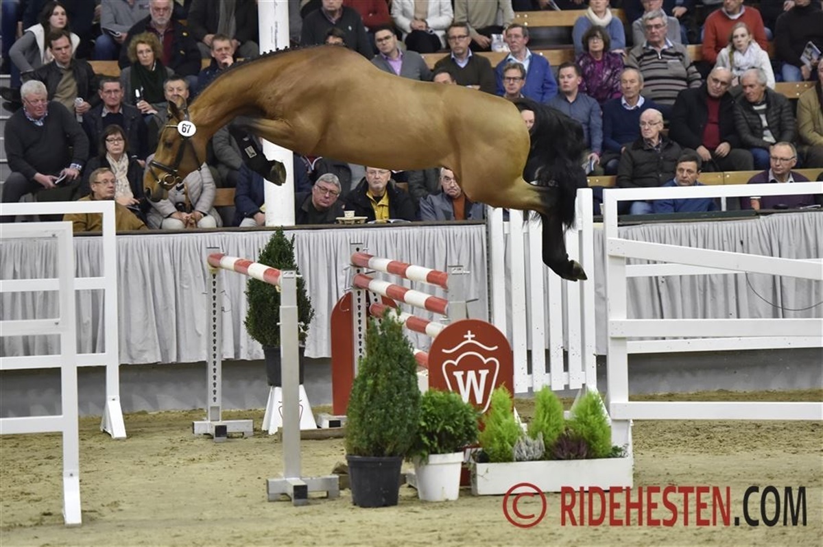 Sidste år var det helt overvældende godt at overvære løsspringningen i Westfalen, derfor var det i år frustrerende at se, hvor utrygge mange af hingstene virkede, da de skulle løse den opgave. Flere hingste gik næsten helt i stå i afsættet eller forsøgte at undvige forhindringerne. Der blev gisnet om, hvad der kunne være galt, indtil sønnerne efter Cornet Obolensky kom på banen og viste vejen. Det er imponerende som den hingst sætter sit præg på springhesteavlen i disse år. Også en søn efter Cristallo I fulgte godt med, både i kraft af stor kapacitet og lethed ved opgaven. Kåringen i Westfalen åbenbarer ofte hingste af andet blod, end det vi lige kender mest til herhjemme. I år var ingen undtagelse. To sønner efter Global Express (Orient Express/Laudanum xx), altså fransk blod trukket på hhv. en Ahorn/Baloubet du Rouet-hoppe og en Untouched S/Canturo-hoppe, sprang med stort overblik og masser af kapacitet.