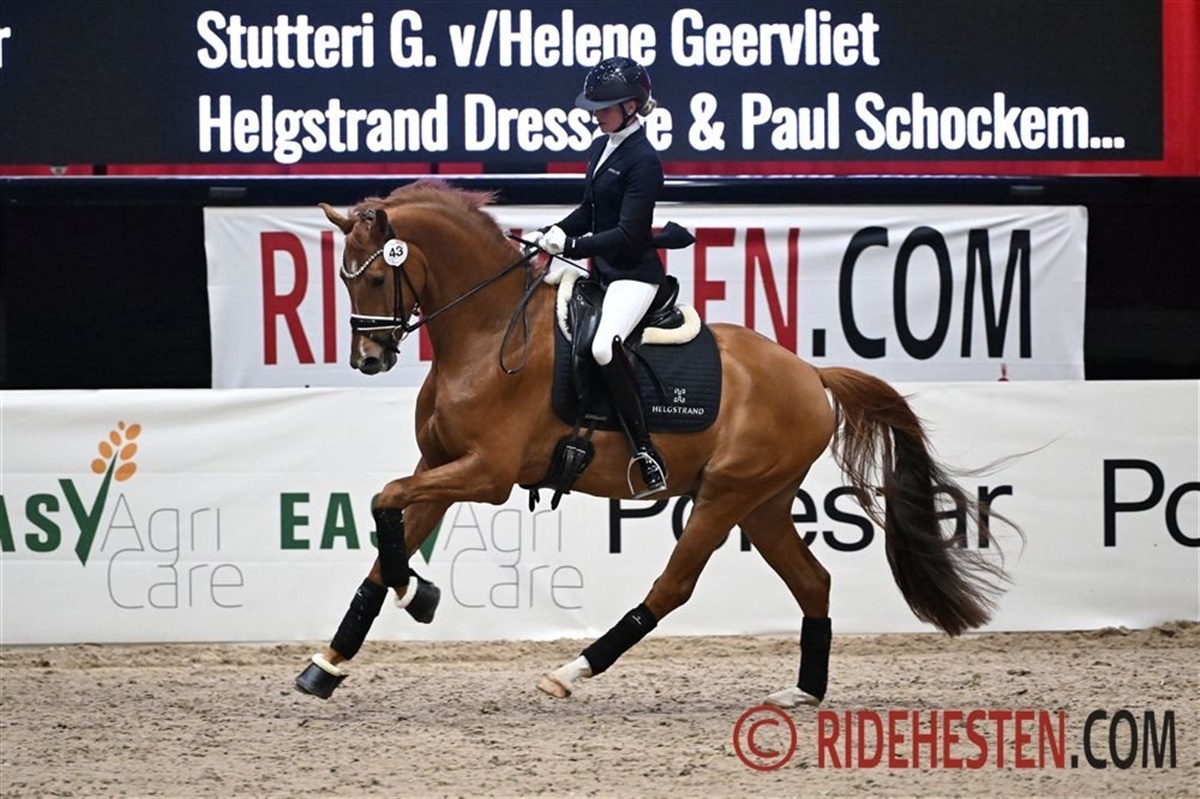 Vinder af klassen var Helgstrands nye hingst DC-10, der er ejet sammen med Joop van Uytert. Med Alvaro Rodriguez Siscar i sadlen fik hingsten af dommerne 10 for trav, 10 for galop, 8,0 for skridt, 9,5 for ridelighed og 10 for eksteriør, hvilket gav et slutresultat på 9,5.